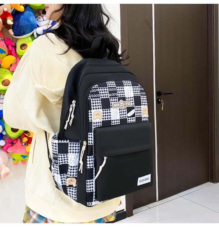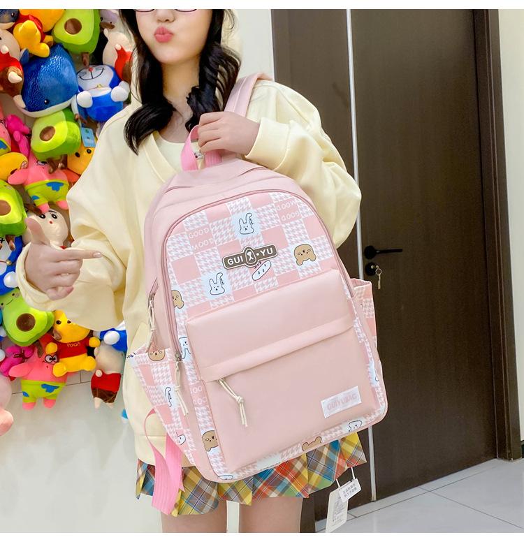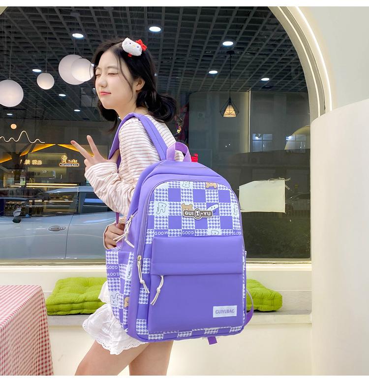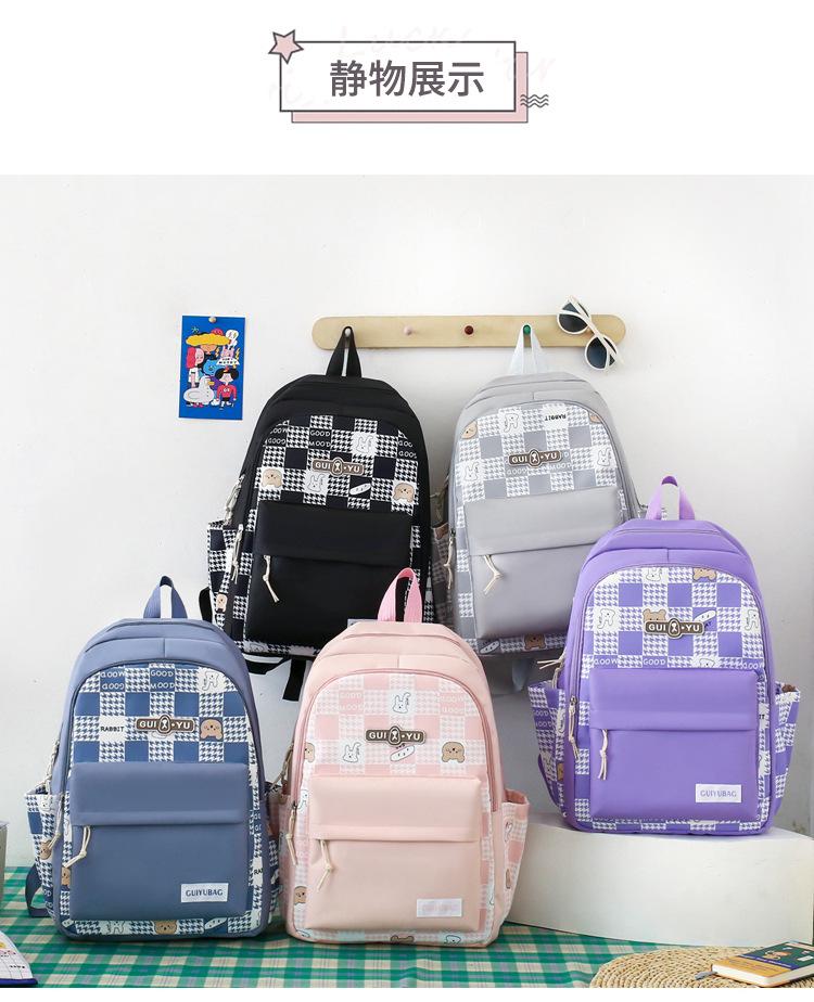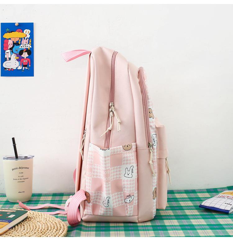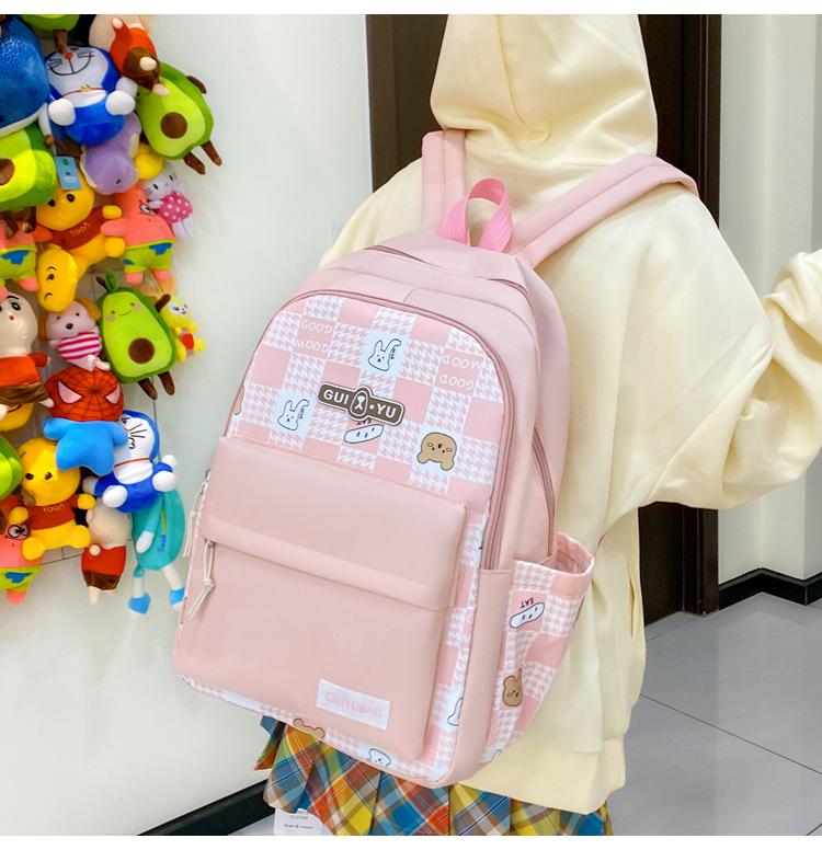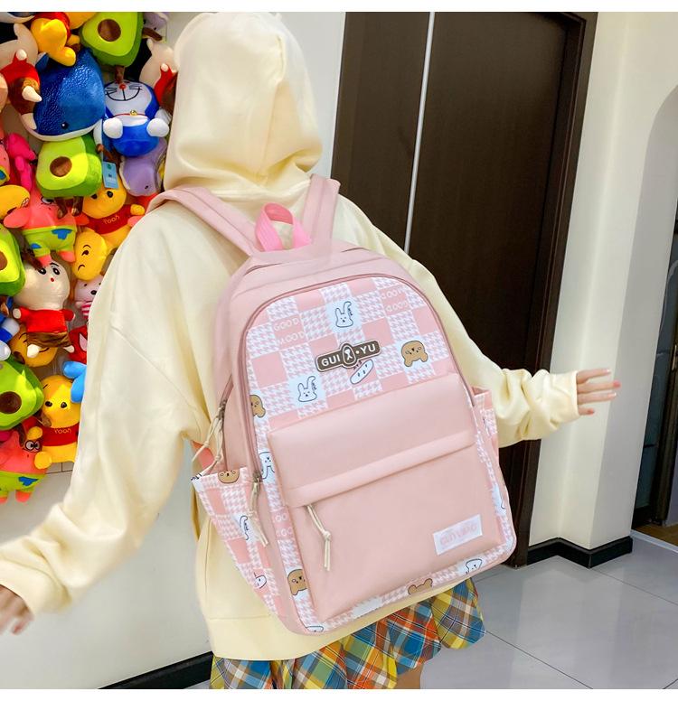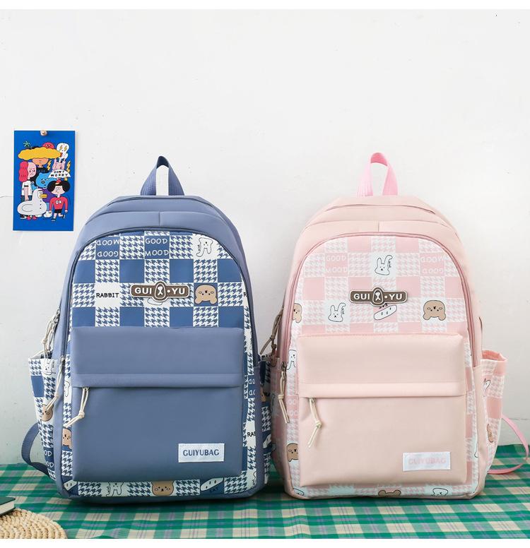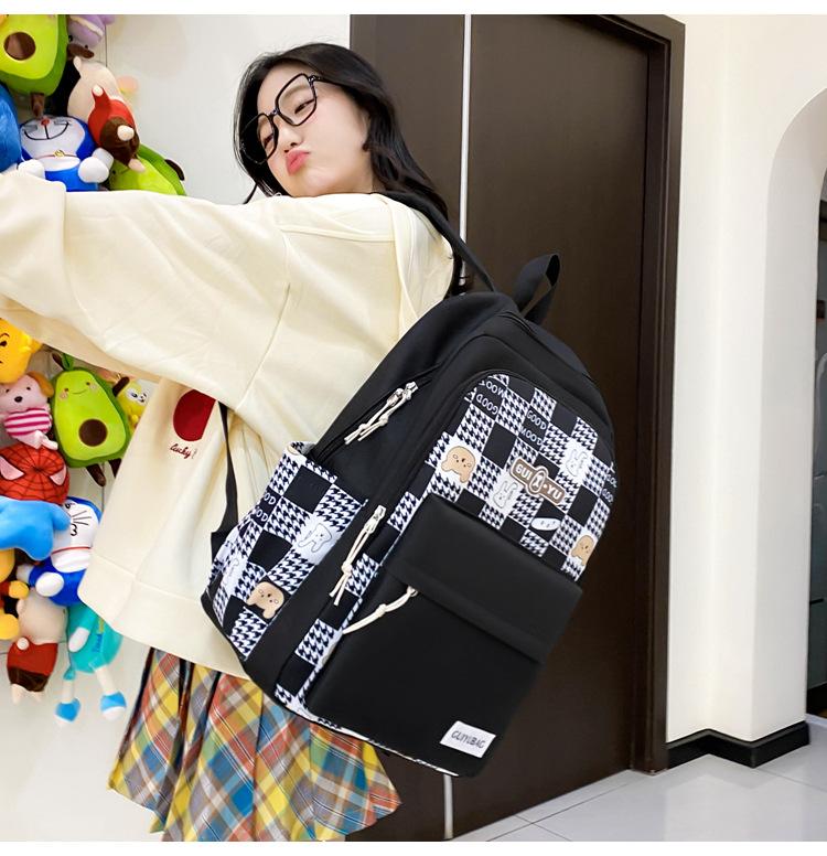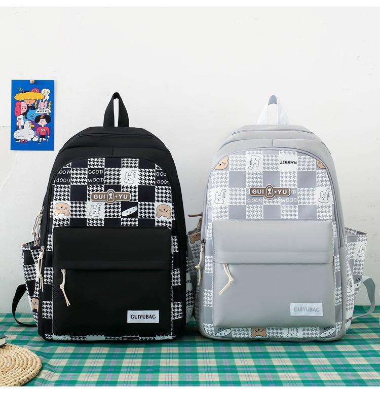 Novo Estilo Pequeno Fresco Bonito Mochila Xadrez Dos Desenhos Animados Casual Simples Menina Mochila Escola Primária Estudante Saco De Escola Mulheres