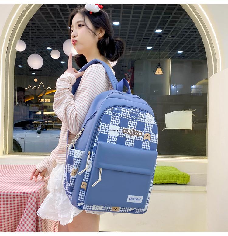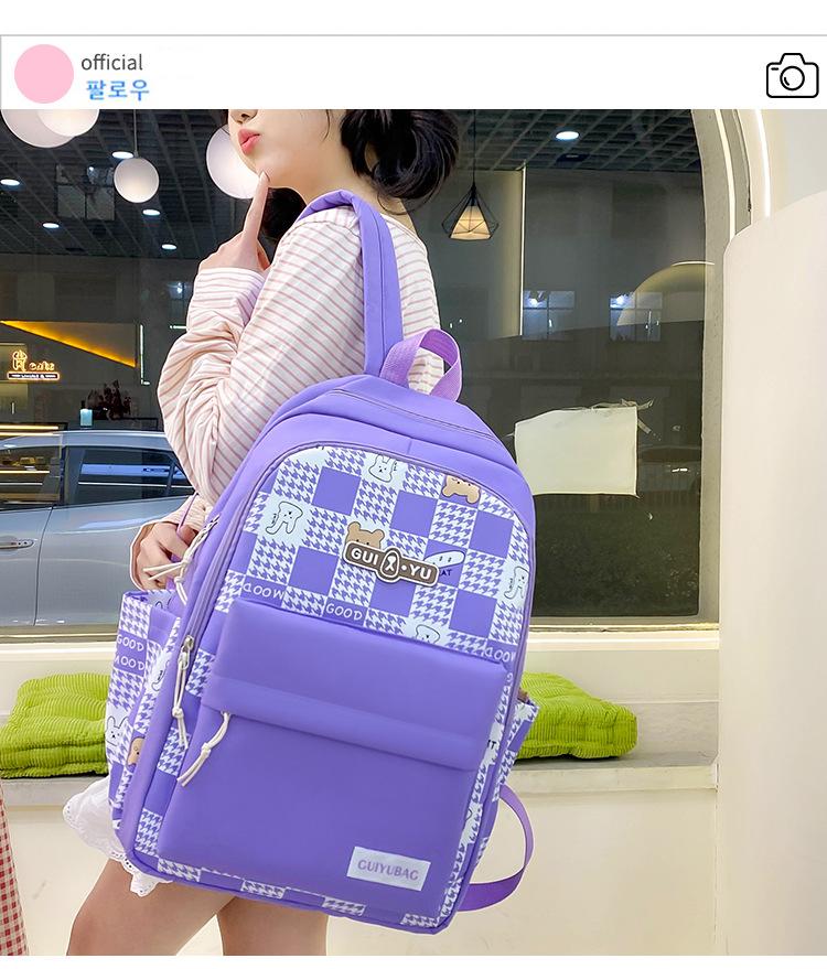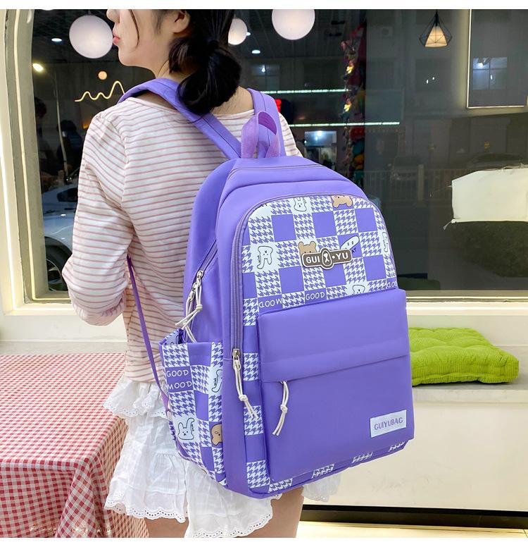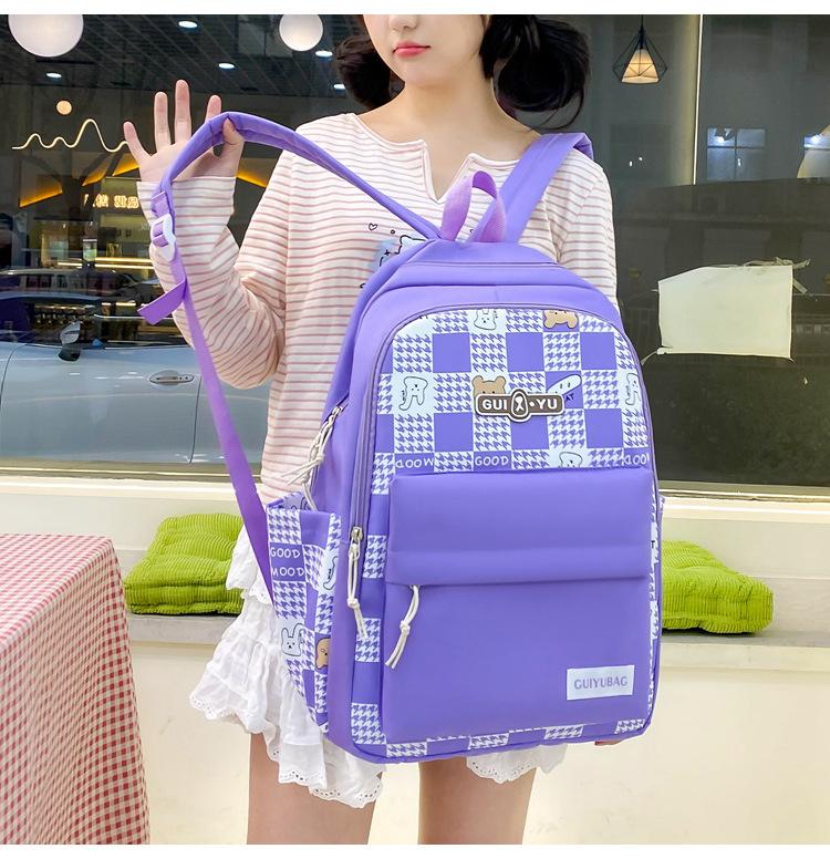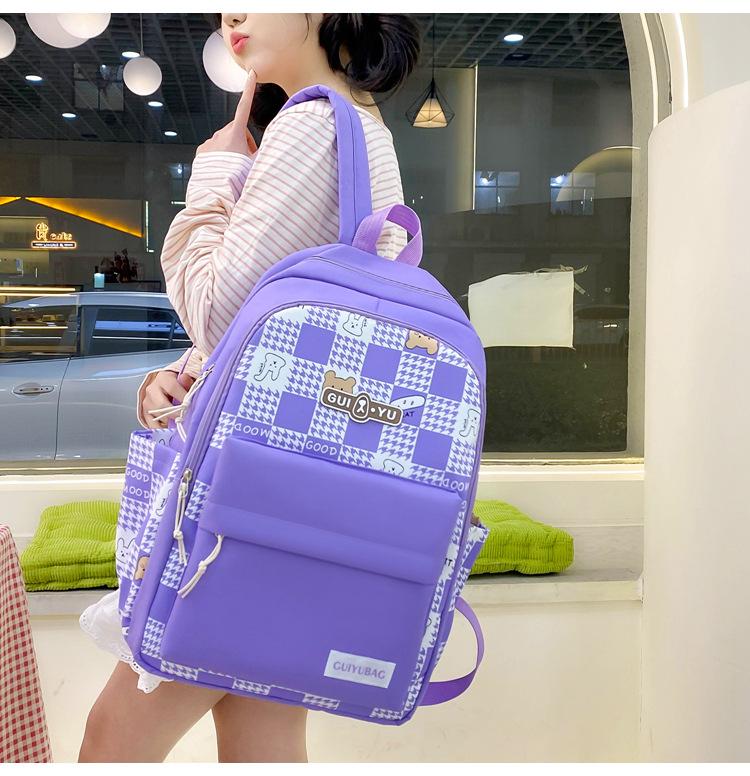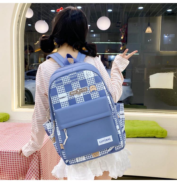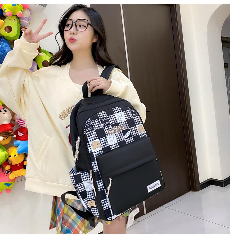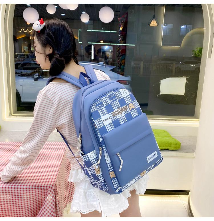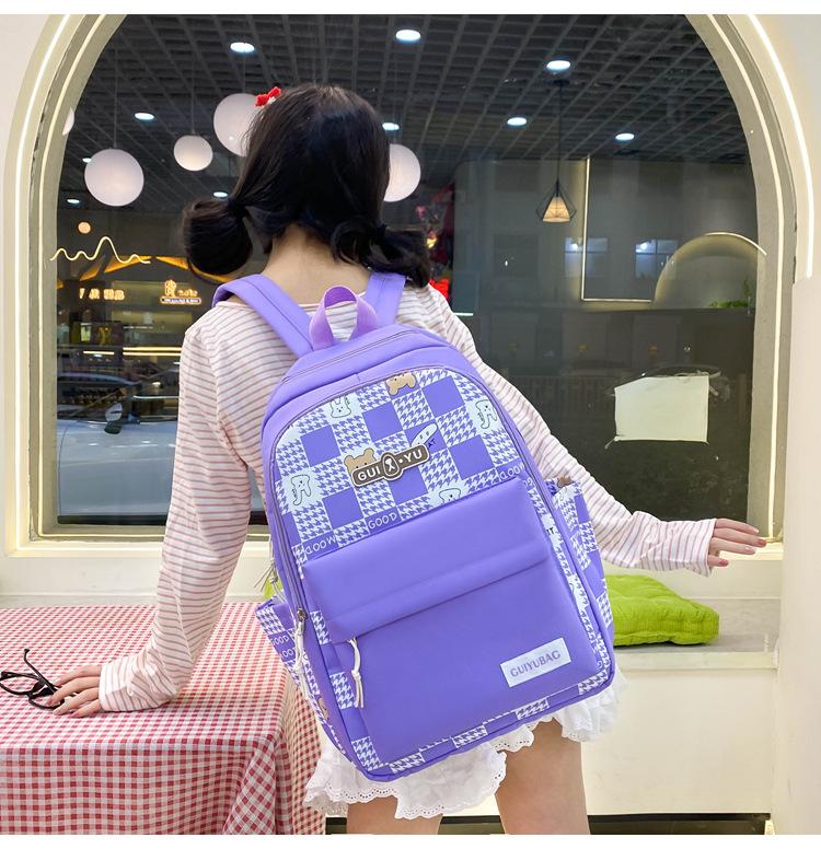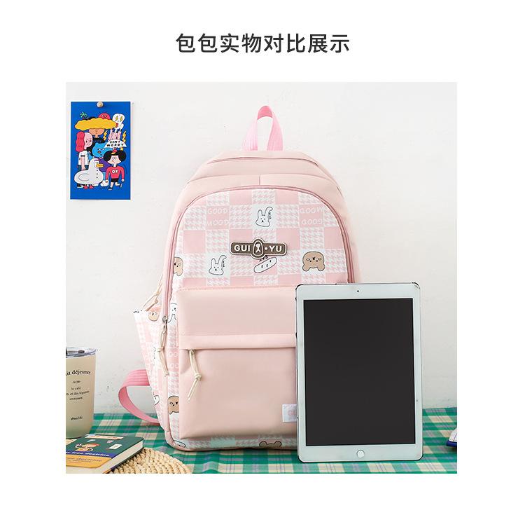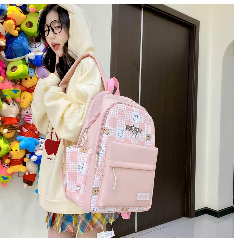 Novo Estilo Pequeno Fresco Bonito Mochila Xadrez Dos Desenhos Animados Casual Simples Menina Mochila Escola Primária Estudante Saco De Escola Mulheres