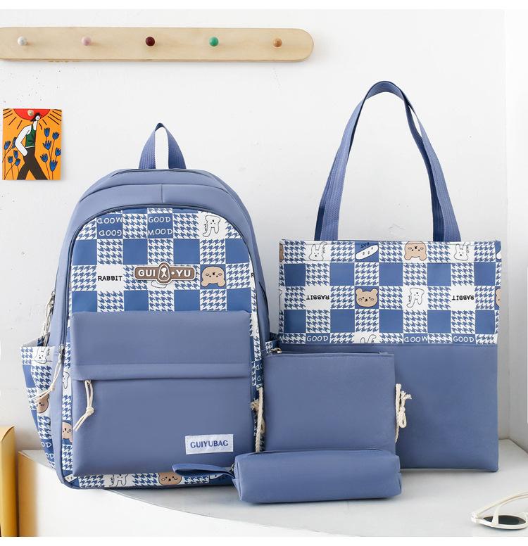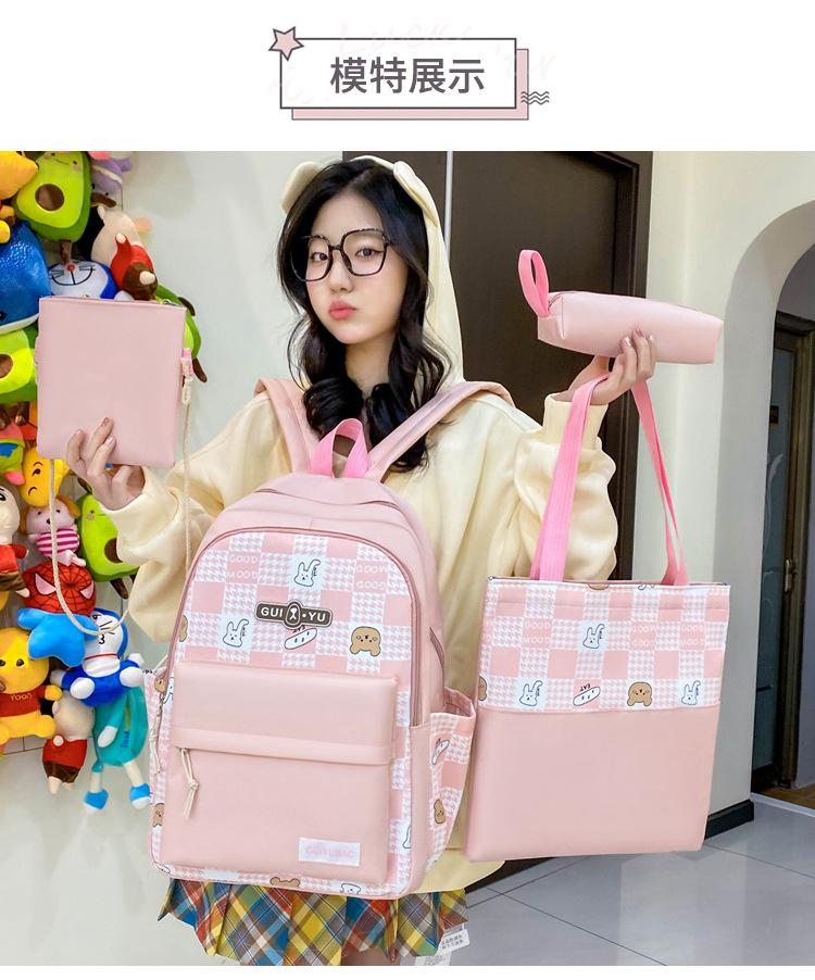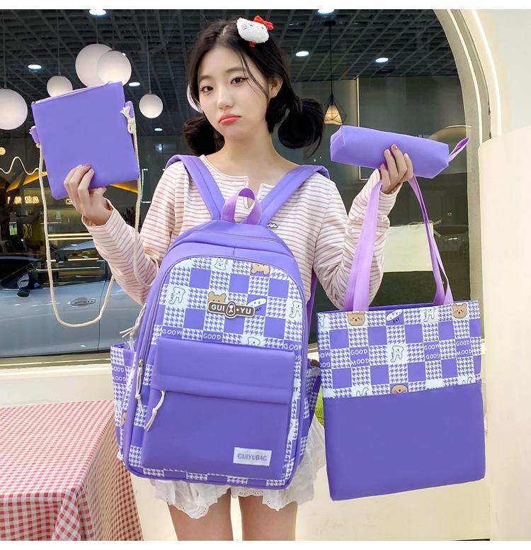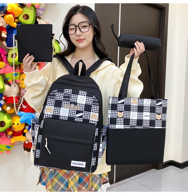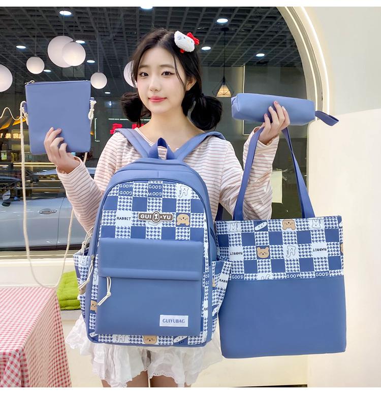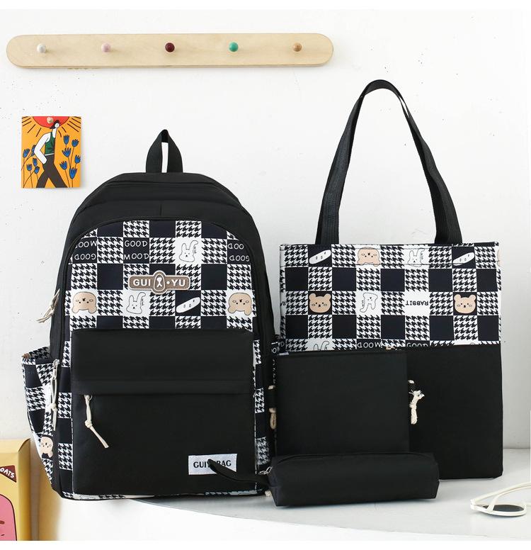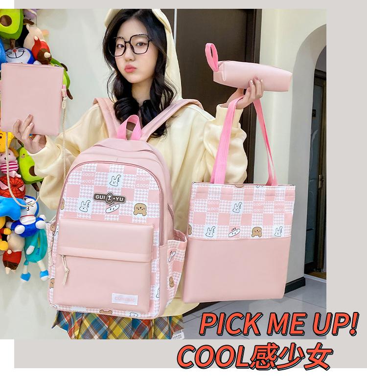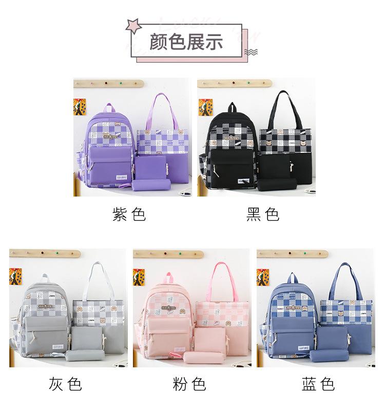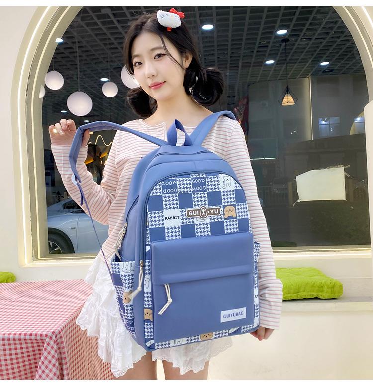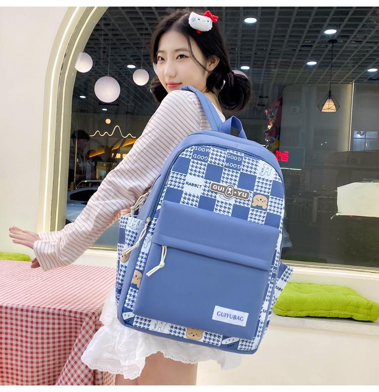 Novo Estilo Pequeno Fresco Bonito Mochila Xadrez Dos Desenhos Animados Casual Simples Menina Mochila Escola Primária Estudante Saco De Escola Mulheres