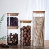 Frasco quadrado de vidro selado com alto teor de borosilicato Garrafa de armazenamento Armazenamento de grãos grossos Tempero Tampa de bambu Frasco de vidro à prova de umidade Frasco de chá de flores