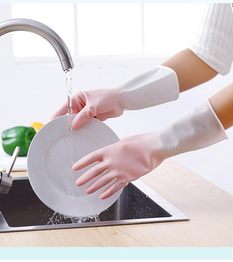 Compre Luvas domésticas atacado cozinha limpeza luvas de lavar louça à prova d'água látex durável alongado moda luvas de PVC antiderrapante no atacado no Joom.pro