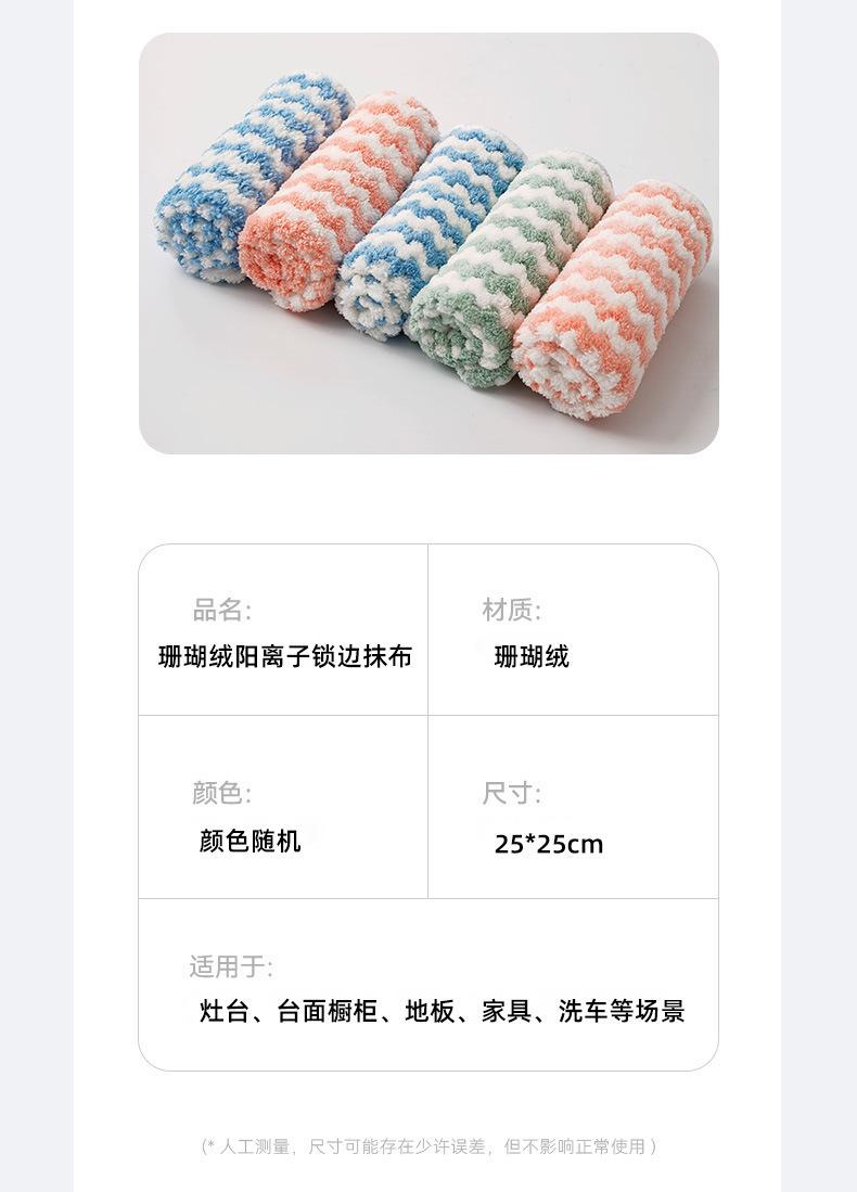Pano de Prato Absorvente de Veludo Coral Catiônico Cozinha Fibra Não Gruda Óleo Pano de Limpeza Doméstico com Forte Absorção de Água
