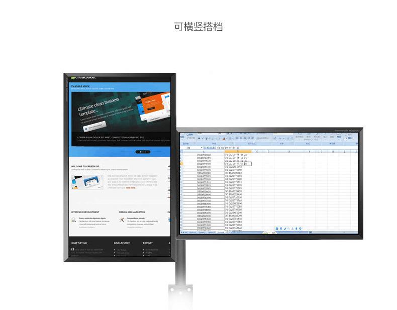 9. Características do suporte do monitor: ajuste de rotação universal, ajuste interno e externo bidirecional, navegação na tela horizontal e vertical