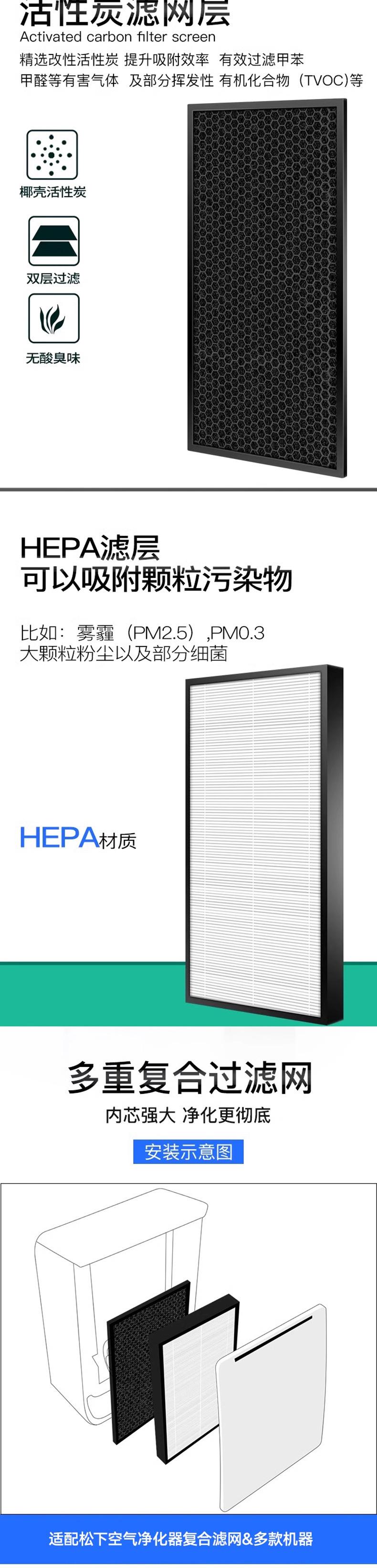 Adequado para filtro de ar da série completa Panasonic filtro composto multimodelo de carvão ativado HEPA Filtro de ar Panasonic