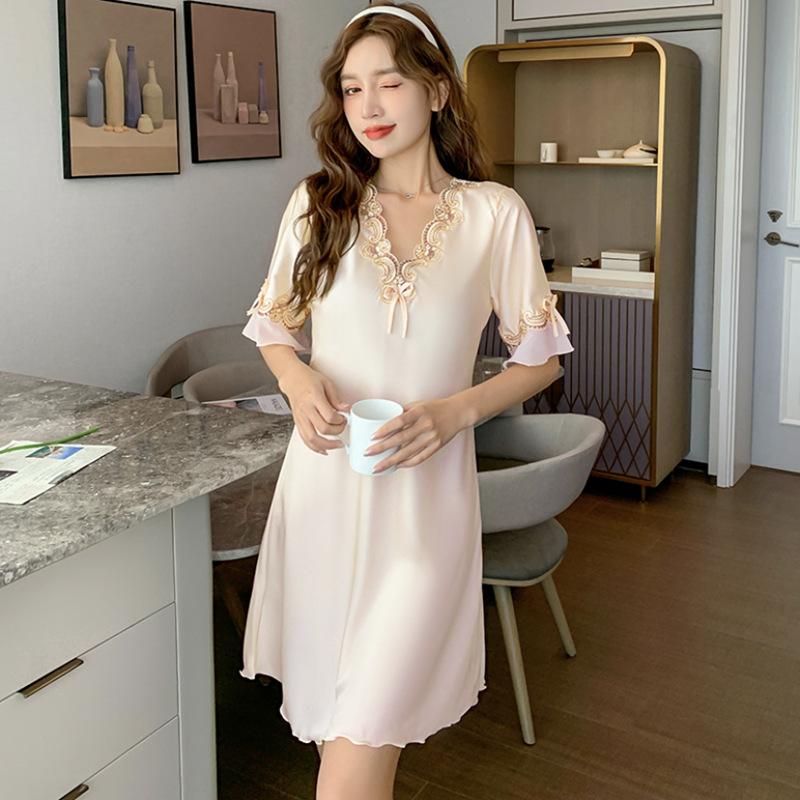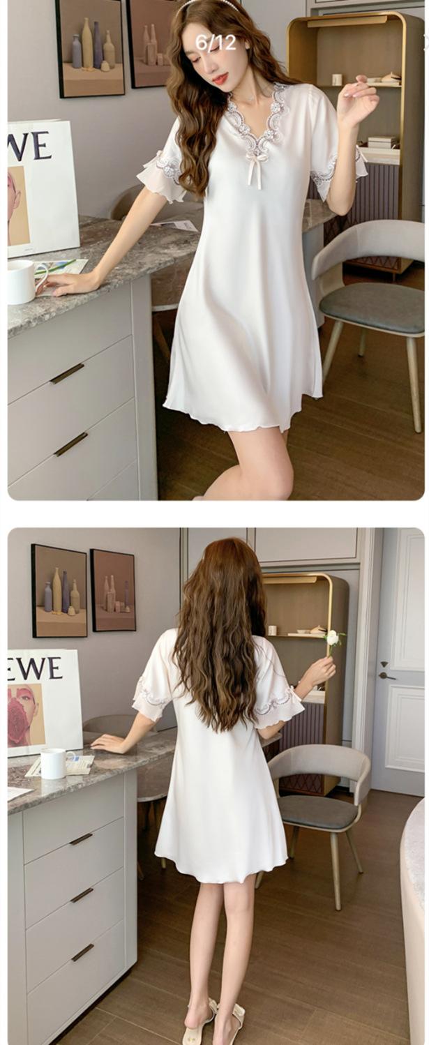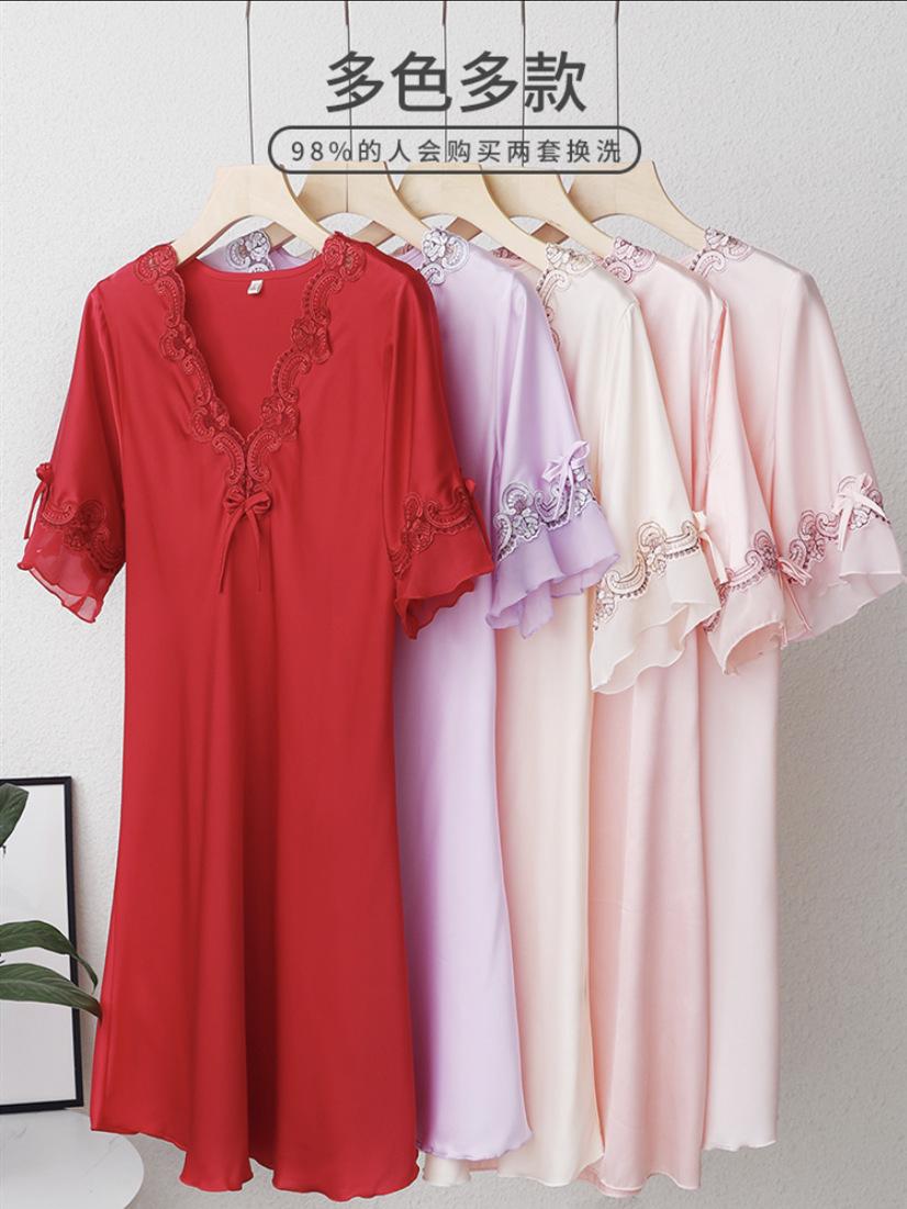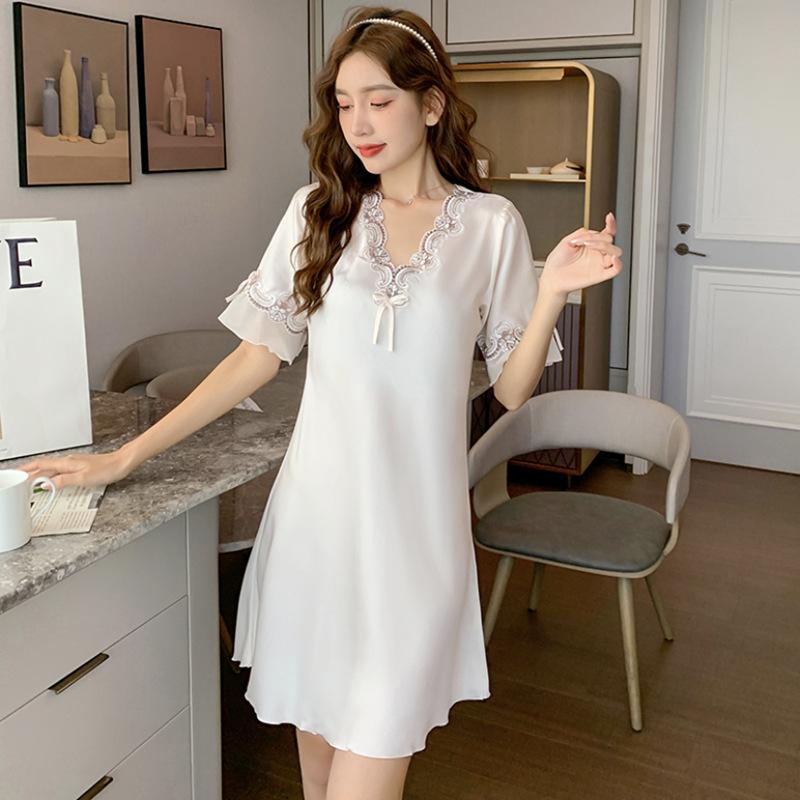 Pijama Branco Sexy Tentação Vestido de Seda Gelo Feminino Nova Camisola de Seda Verão Feminino Manga Curta Fino pijama plus size