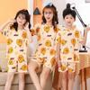 Pijama de verão para pais e filhos, feminino, manga curta, cor sólida, seda gelo, família de três, mãe e filha, menino, roupas infantis para casa