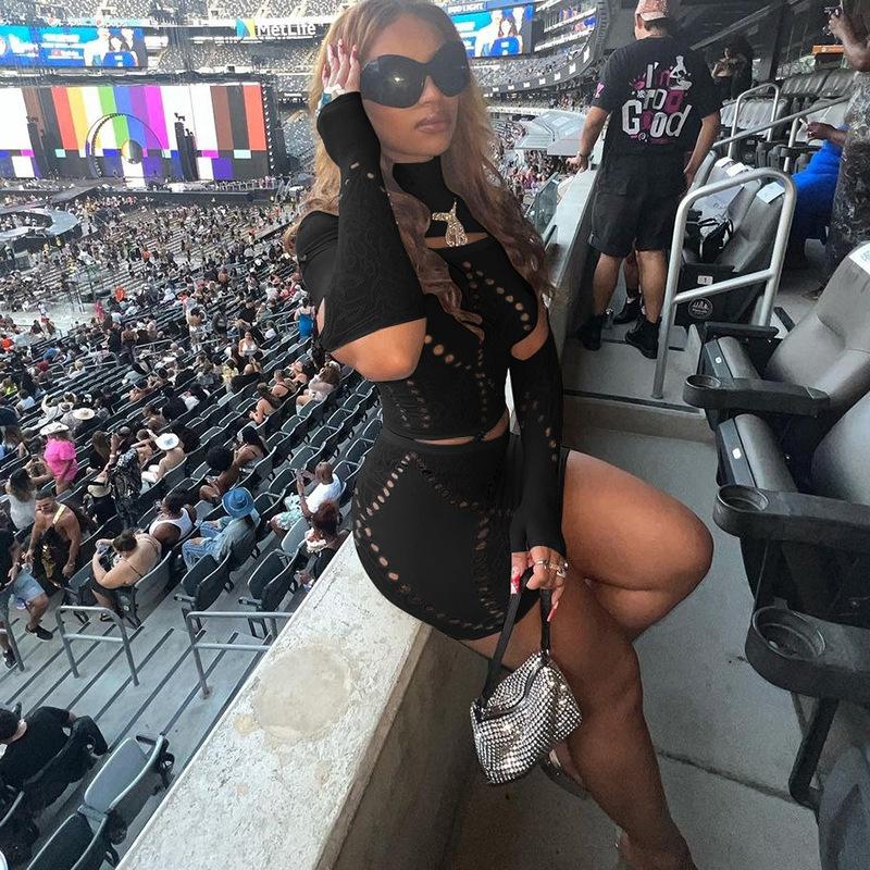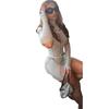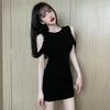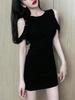 Novo Europeu e Americano 2024 Vestido Feminino de Cor Sólida Perfurado Gola Alta Costura Manga Longa Sexy Ajustado Cintura Baixa Ultracurto
