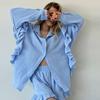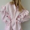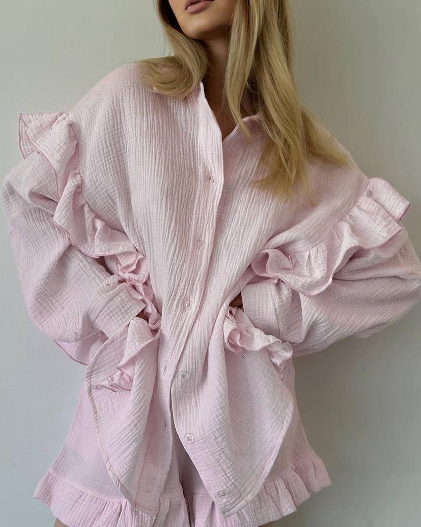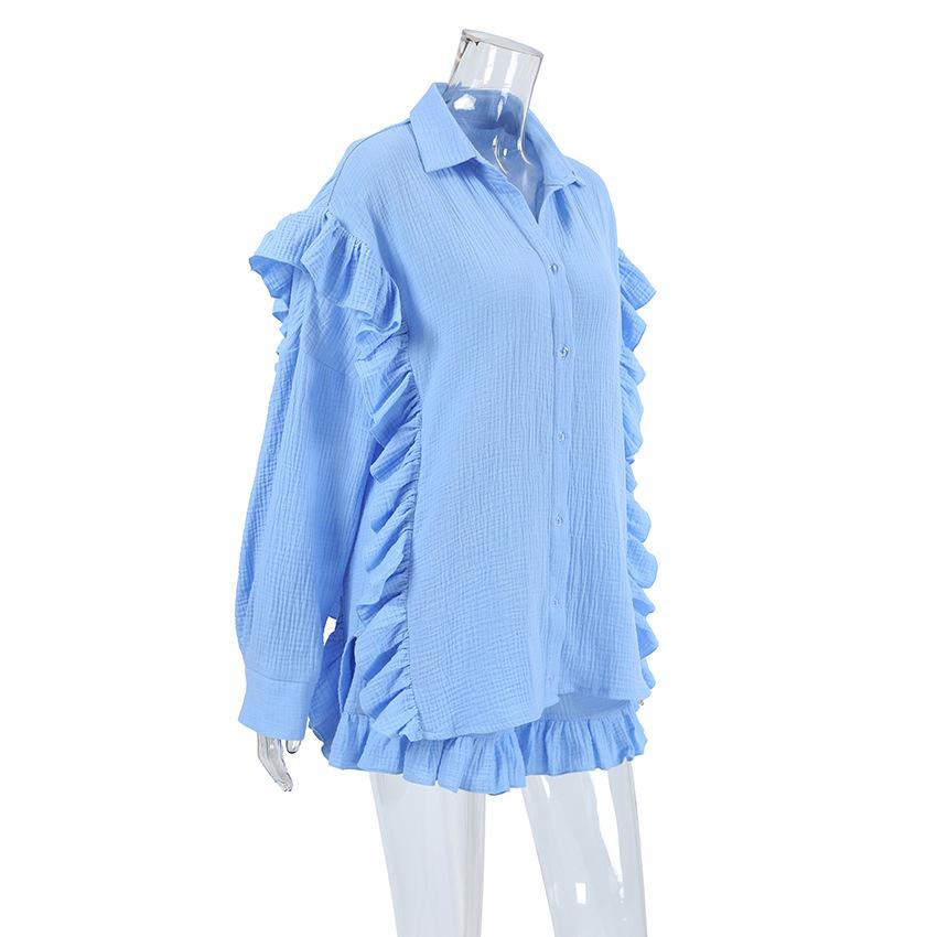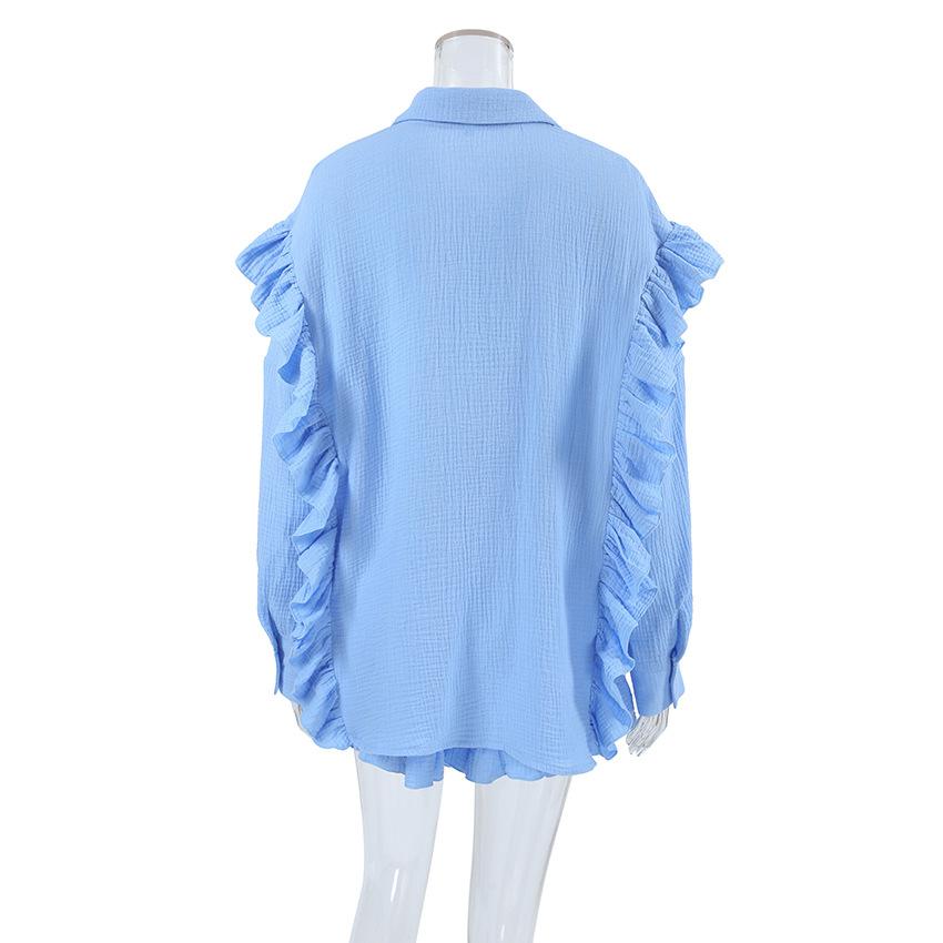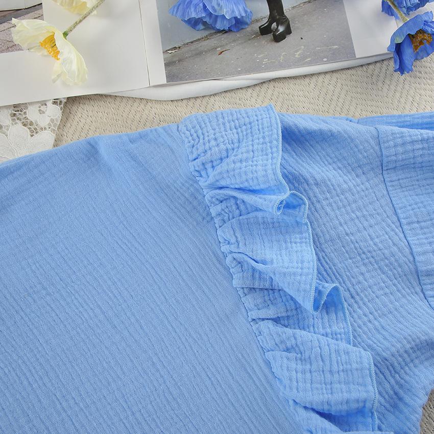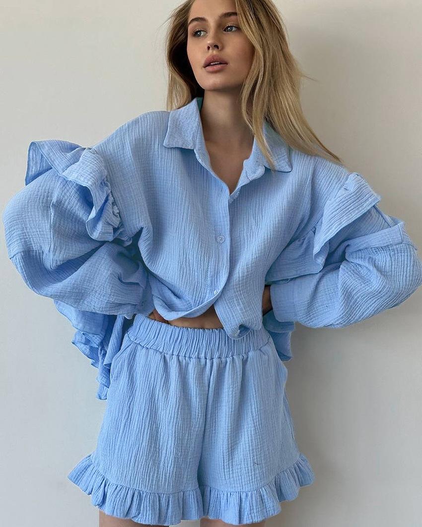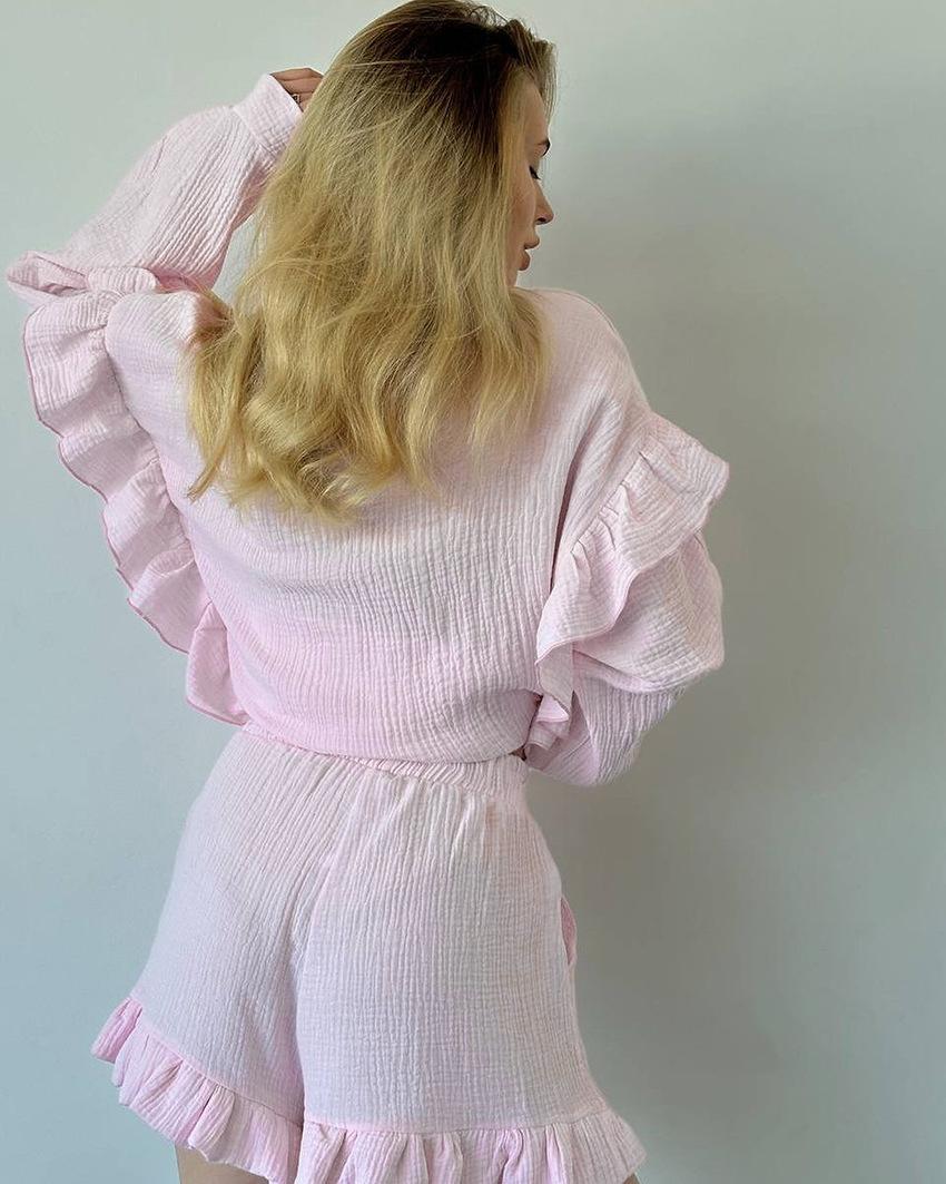 Pijamas de mujer transpirables de manga larga con volantes de algodón de moda de otoño y verano de 2024 en Europa y Estados Unidos, ropa de hogar transfronteriza.