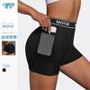 Shorts de fitness Bolso feminino apertado cintura alta Levantamento de quadril Trimestral Pêssego Quadril Elástico Secagem rápida Gaiden Calças de ioga esportiva