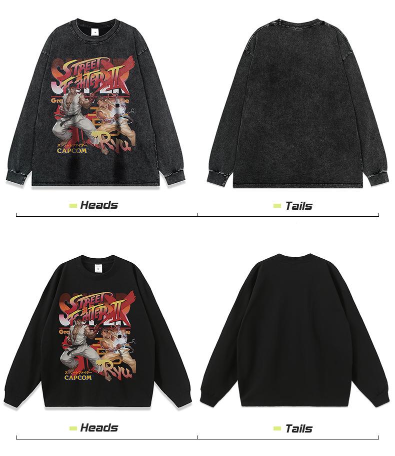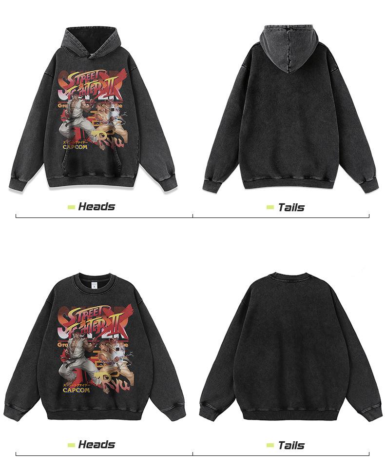 Compre Animação Japonesa Dos Desenhos Animados Impresso hiphop Pesado Lavado Velho Suéter Com Capuz Dos Homens Da Moda Nacional Antigo Manga Comprida Com Capuz no atacado no Joom.pro