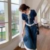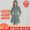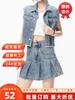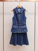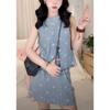 Terno Jeans Azul Claro Feminino Duas Peças Verão 2025 Novo Pequeno Diamante Quente Sem Mangas Saia Plissada Terno