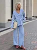 Real Shot Verão Pendurado Pescoço Top Malha Protetor Solar Cardigan Calças de Perna Larga Calças Casuais Moda Feminina terno 67084