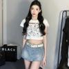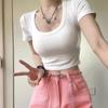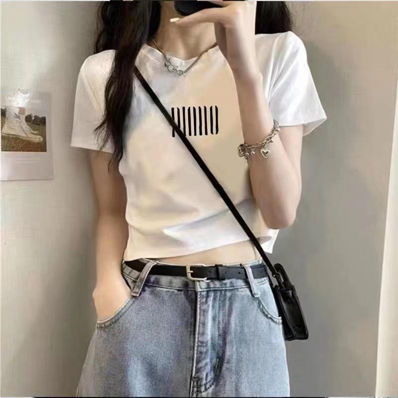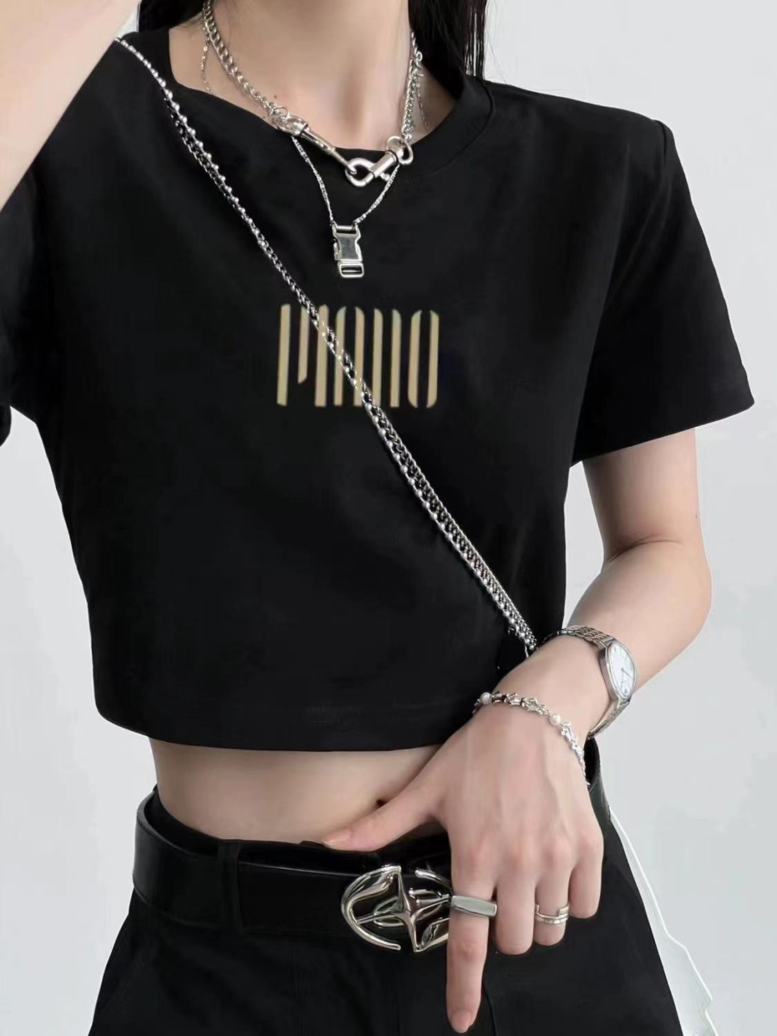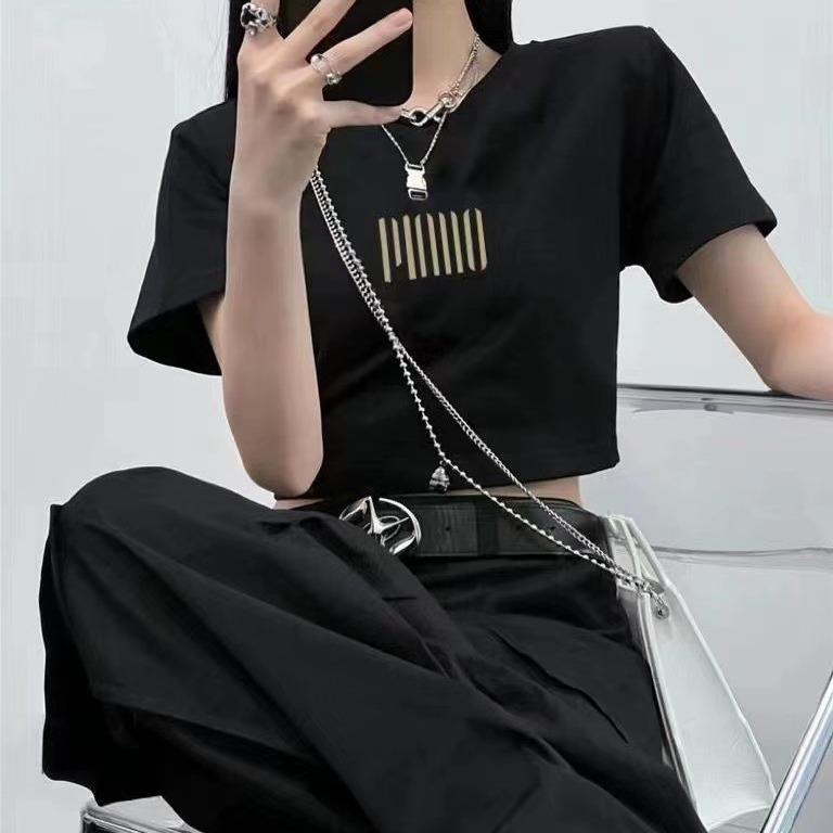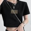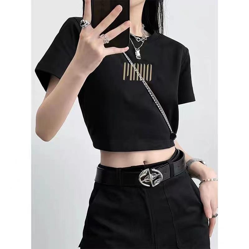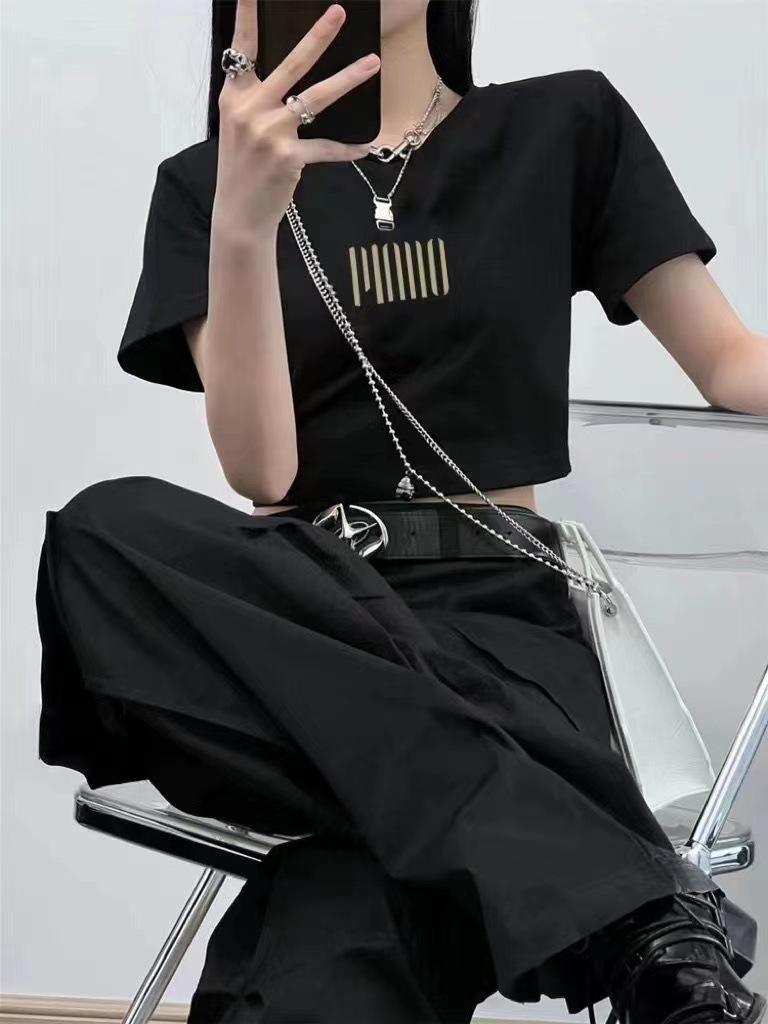 Camiseta curta preta retrô estilo americano, slim fit, para mulheres, verão de 2024, nova, pequena, umbigo exposto, garota gostosa, nova, manga curta