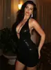 Sling Low-cut Lace Sexy Bar Cintura Lateral-exposta Oco Boate Spice Girl Preto Cross-tight Hip Dress