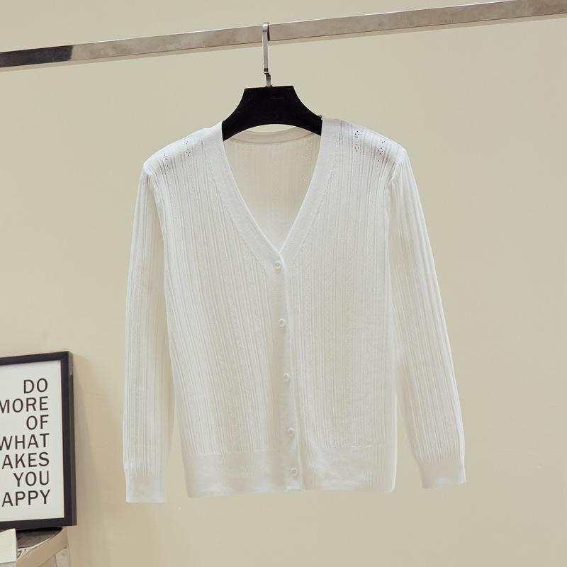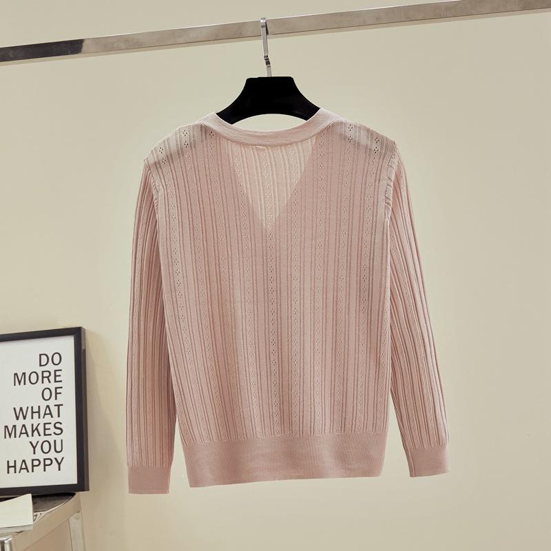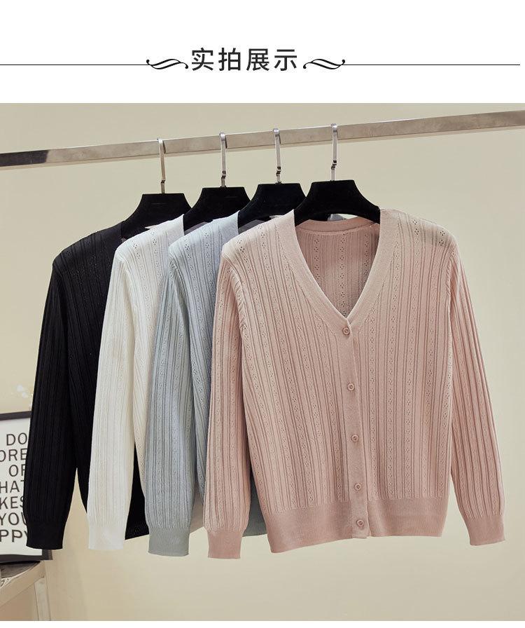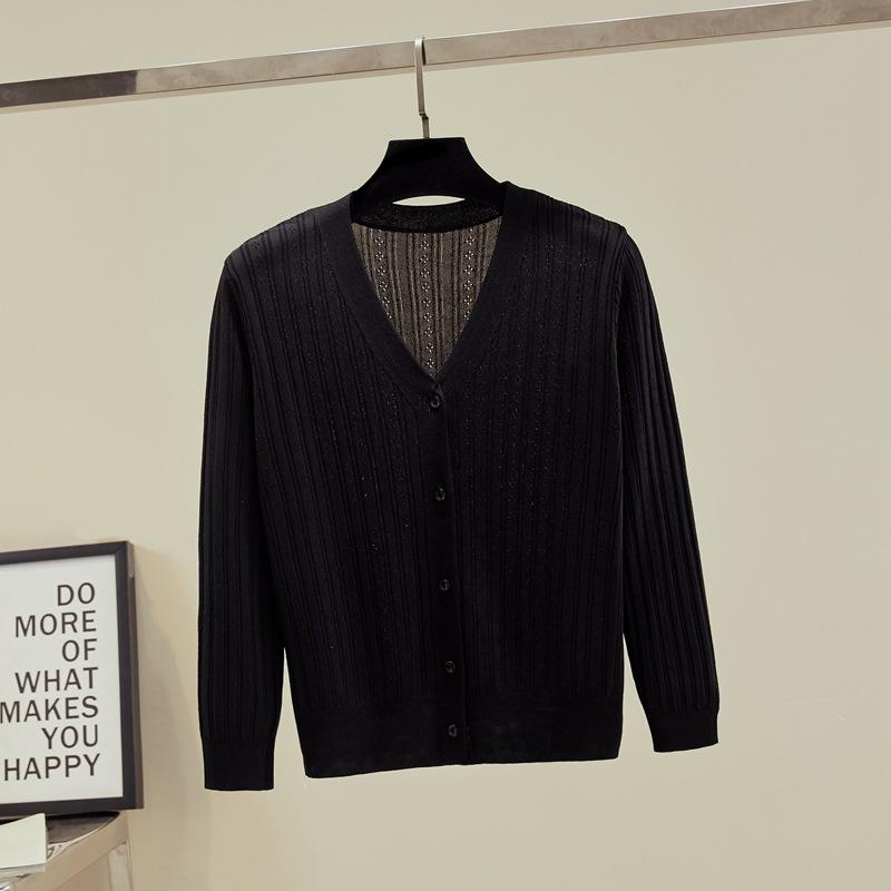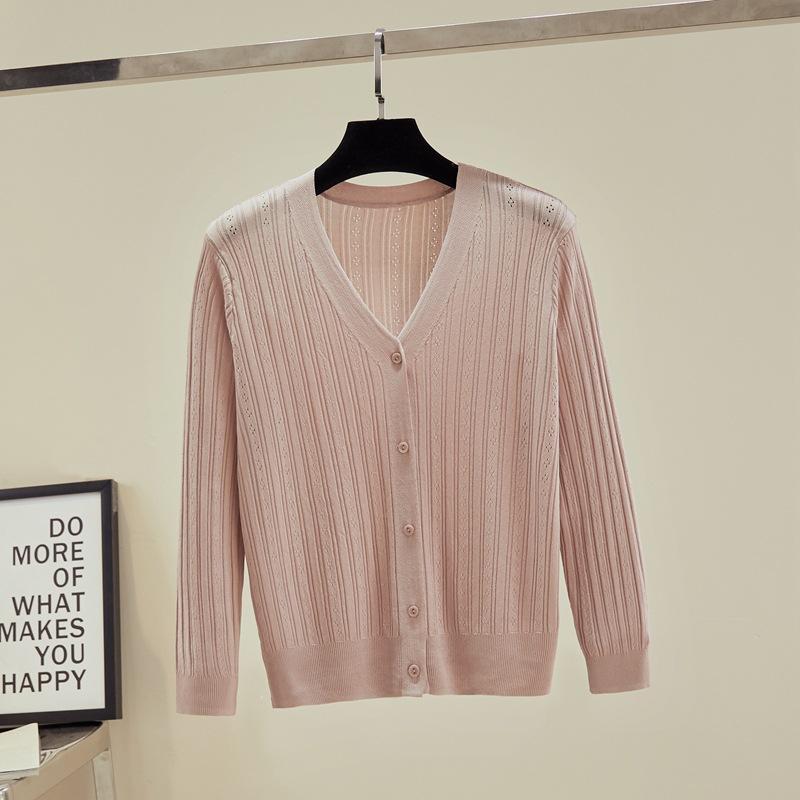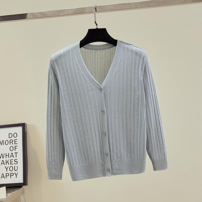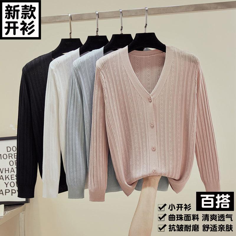 2021 Primavera e Verão Novo Ice Silk Fino Malha Cardigan Feminino Decote Em V Manga Três Quartos Curto All-match Sweater Cardigan