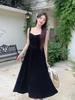 Vestido Longo de Verão Feminino Preto Sem Mangas com Alças Estilo Coreano, Design Exquisito, Nicho de Luxo com Ajuste na Cintura e Costas Abertas