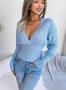 Suéter Pulôver 2024 Outono e Inverno Novo Europeu e Americano Decote em V Manga Morcego Solto Cor Sólida Casaco de Malha para Mulheres