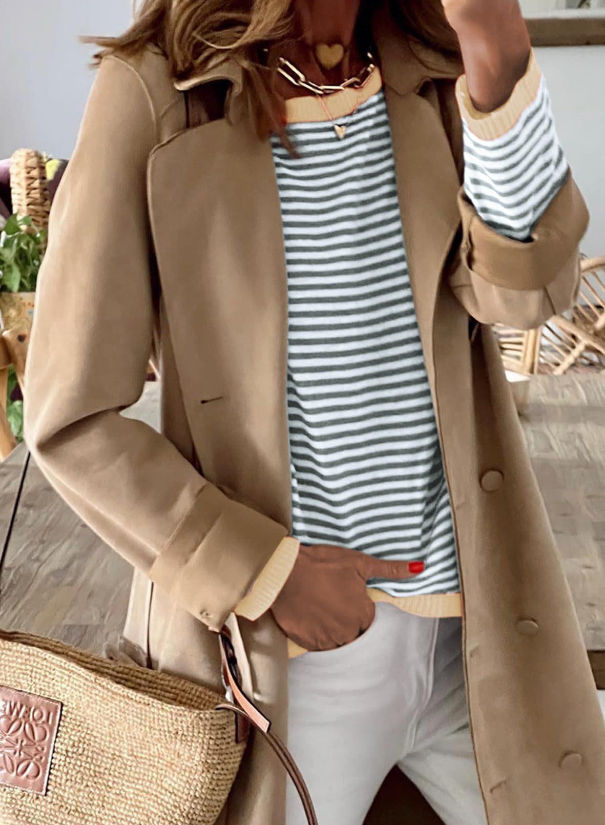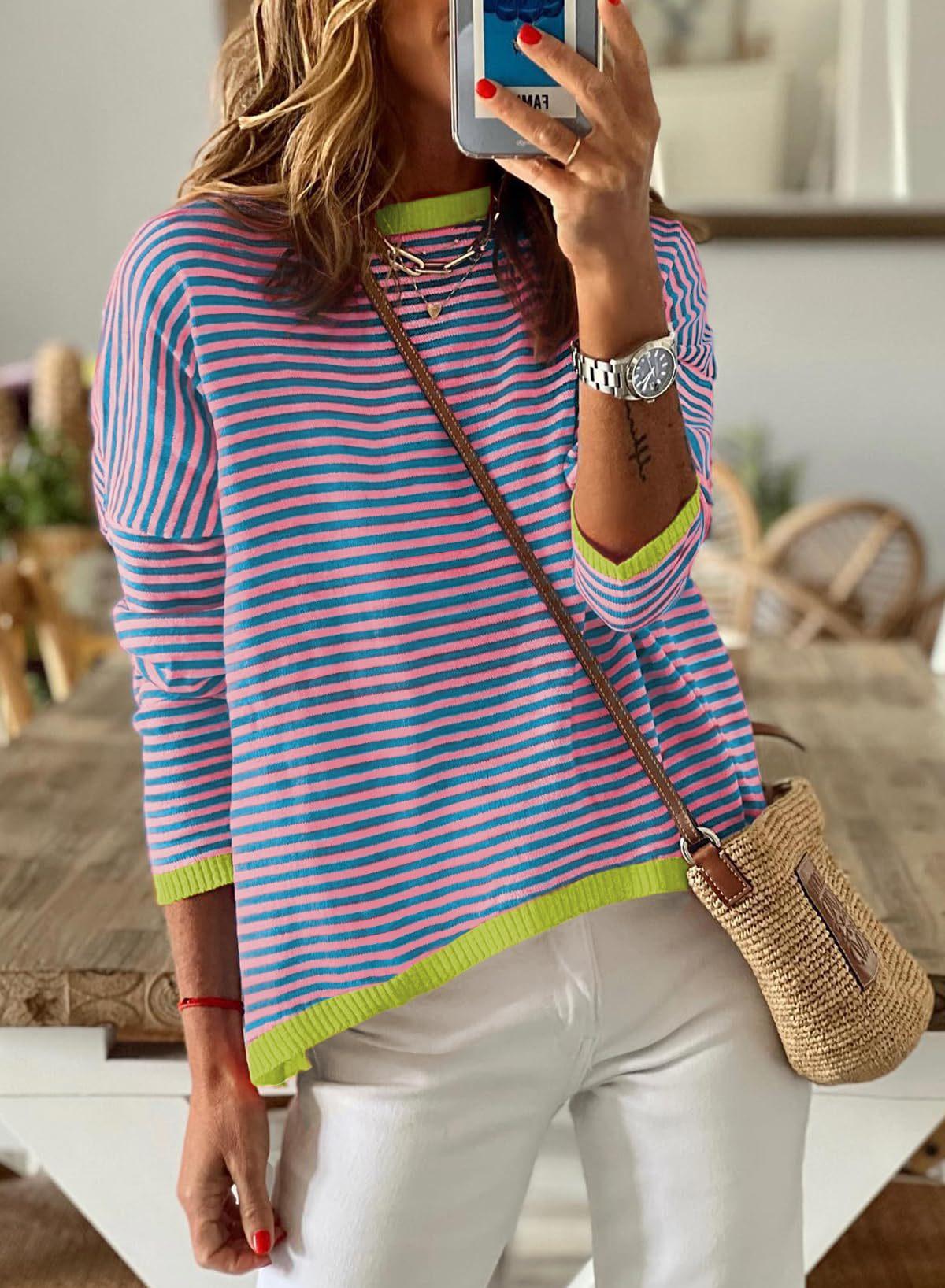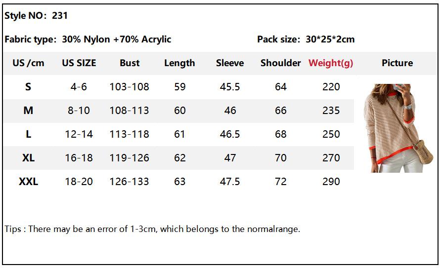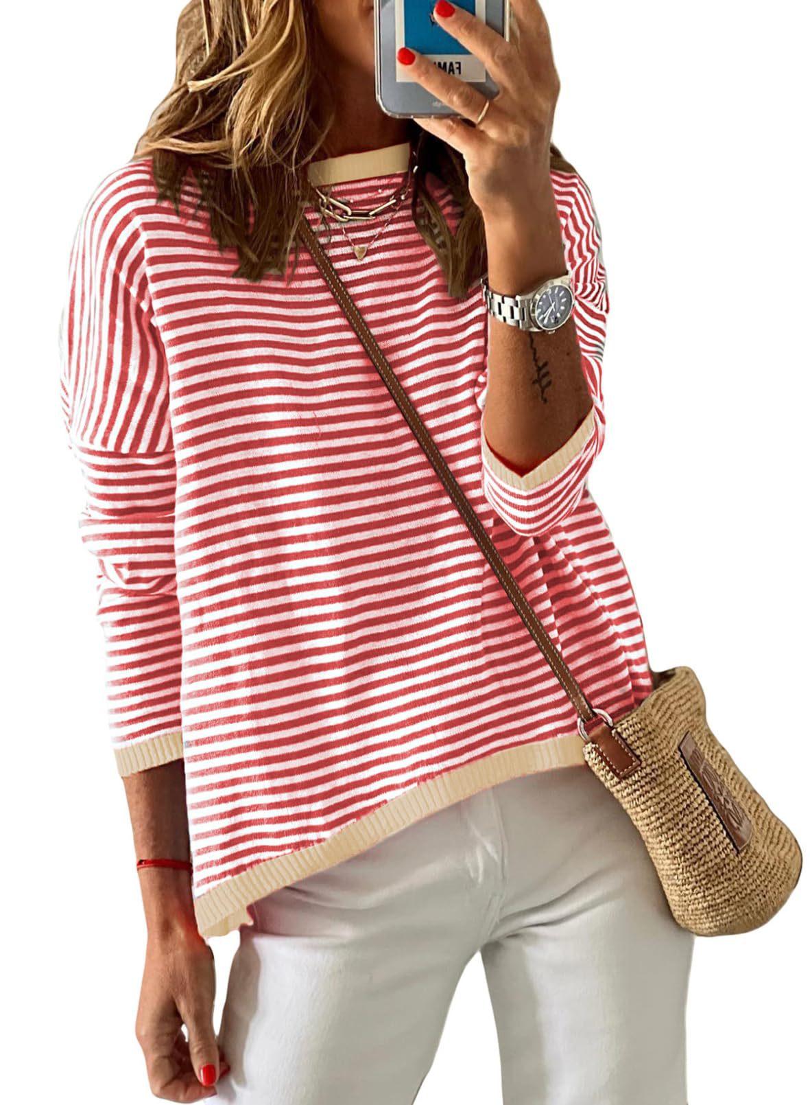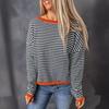 2024 Outono e Inverno Novas Roupas Femininas Europeias e Americanas Transfronteiriças Amazon Femininas Gola Redonda Listrada Cor Contrastante Manga Longa Suéter Casual