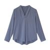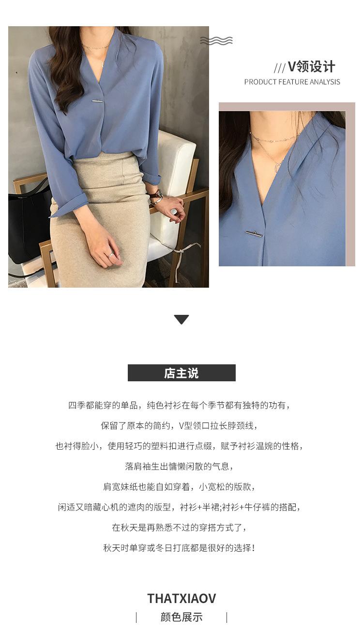Top de manga comprida Camisa de chiffon estilo coreano Base de cor sólida 2024 Primavera e Outono Novo estilo gentil elegante camisa com decote em V para mulheres