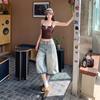 24º ootd! American Street Style | Calças cortadas vintage rasgadas unissex, jeans largos e soltos