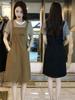 Vestido falso de duas peças feminino de manga curta 2024 Nova moda listrada costura Slim-fit solta saia slim-fit