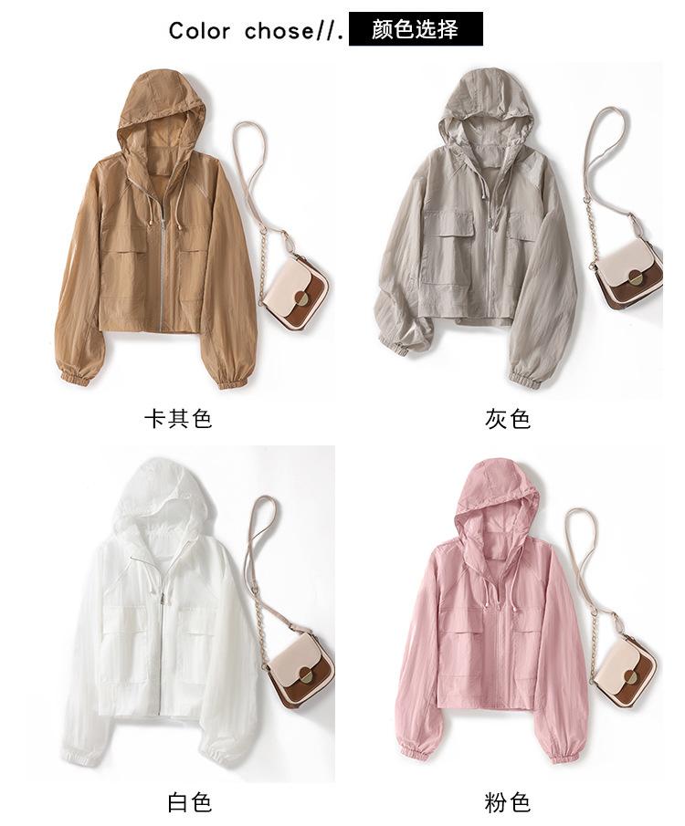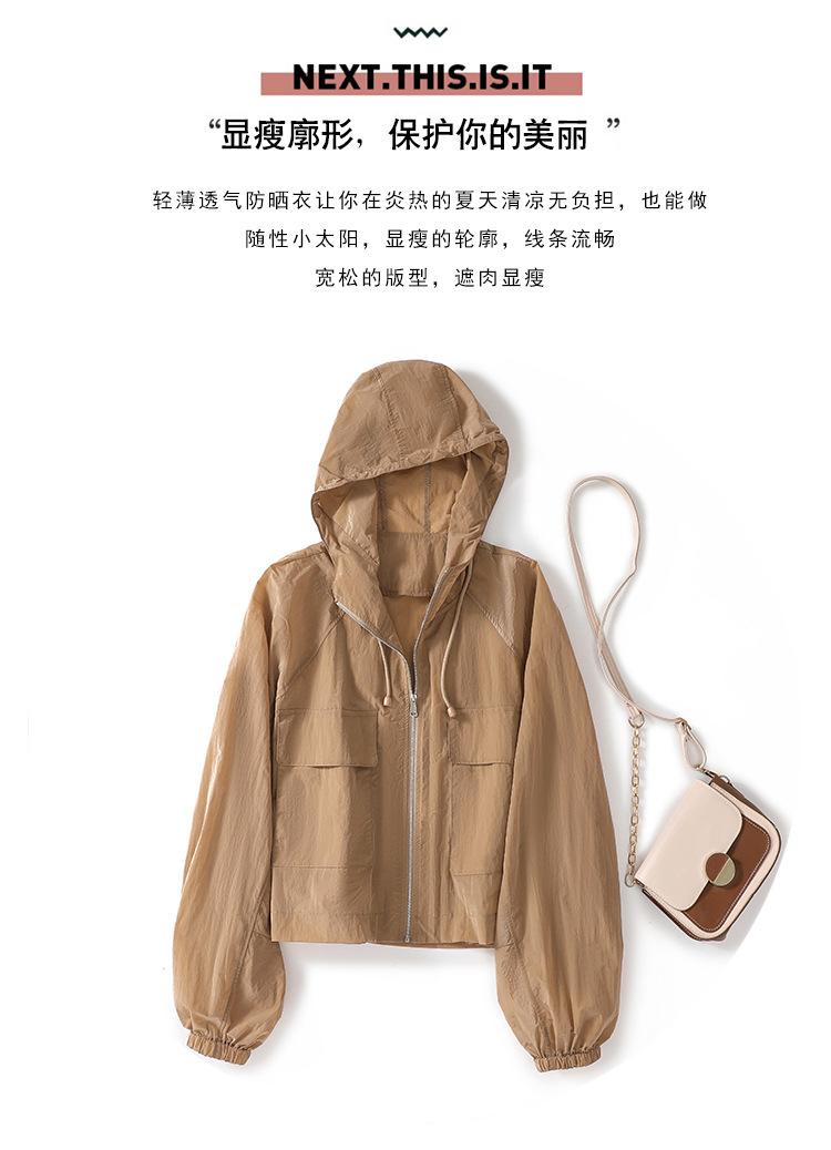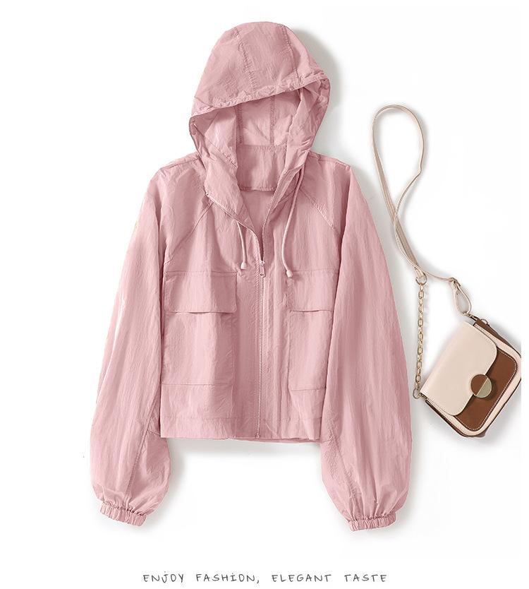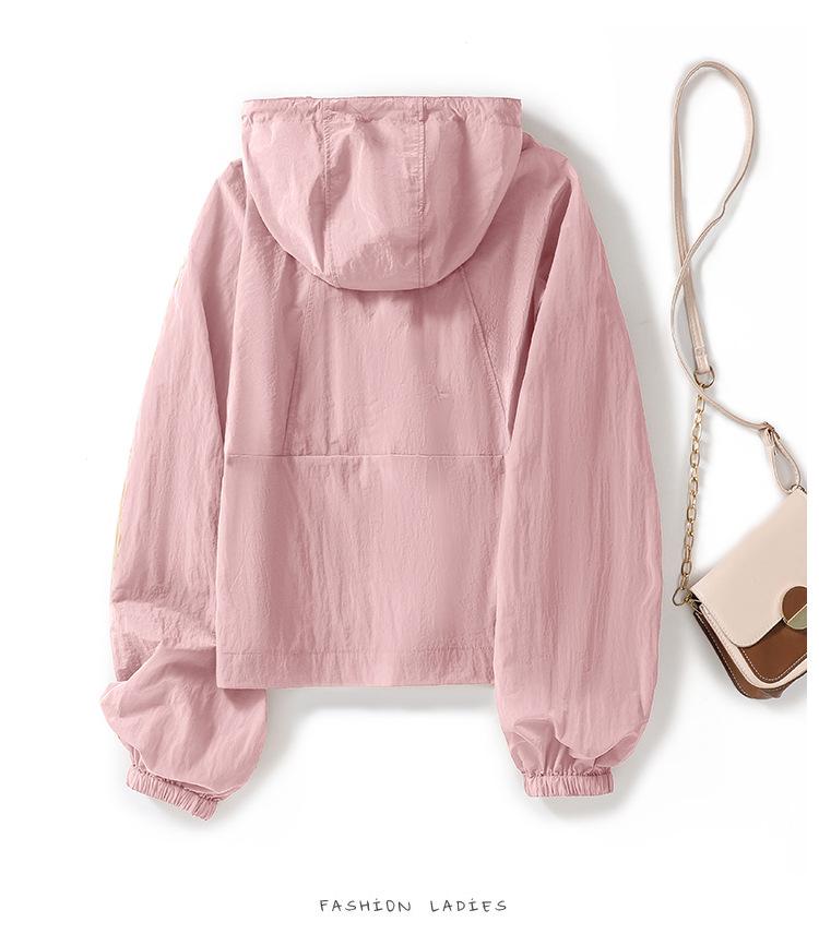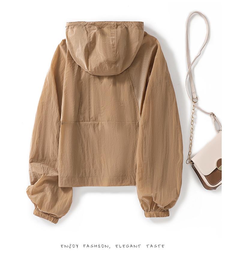 Perfil com capuz curto protetor solar terno solto leve top elegante casual design jaqueta de moda