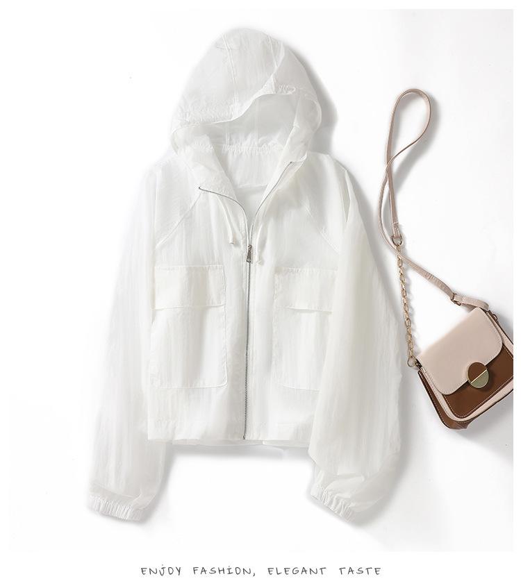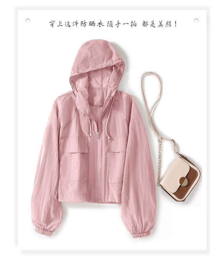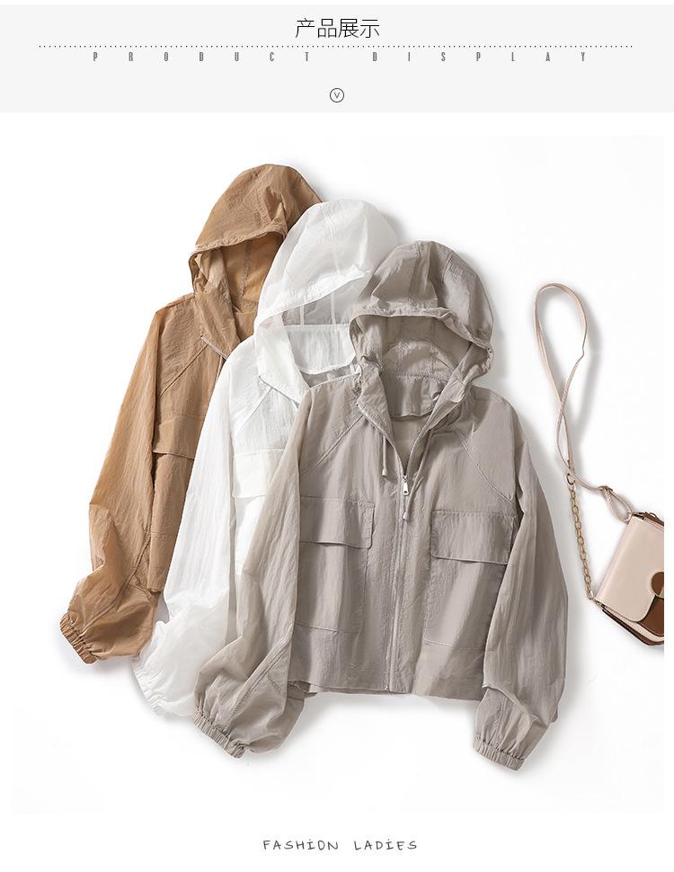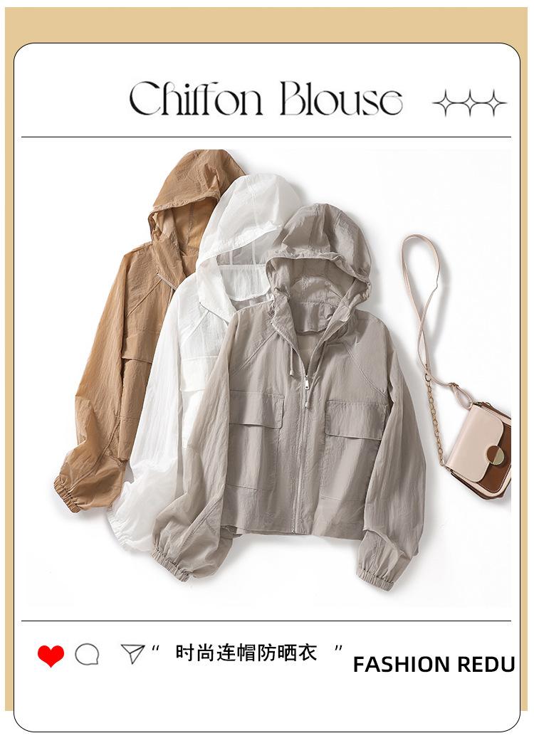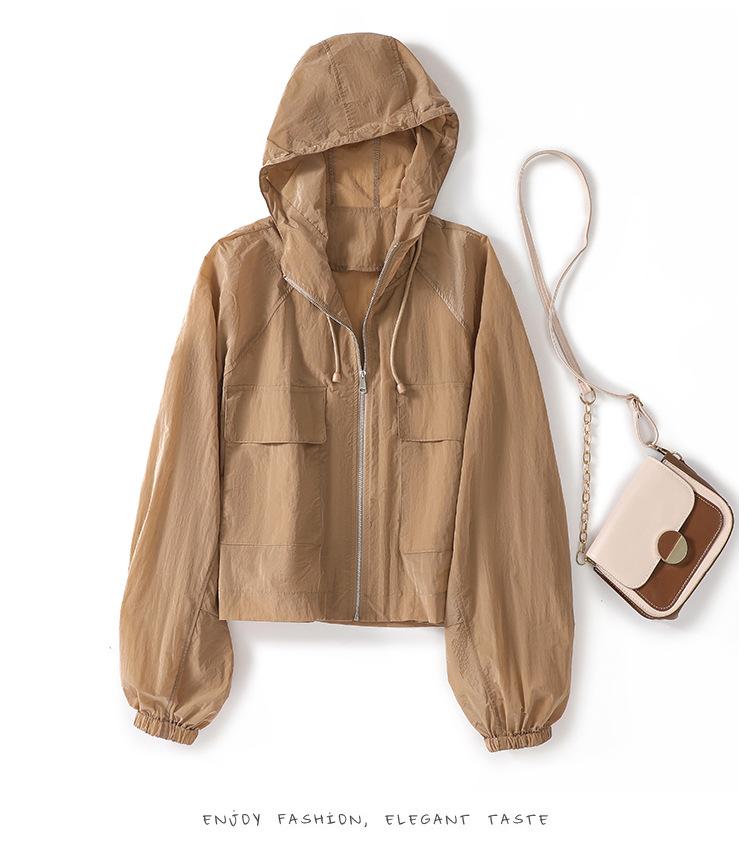 Perfil com capuz curto protetor solar terno solto leve top elegante casual design jaqueta de moda