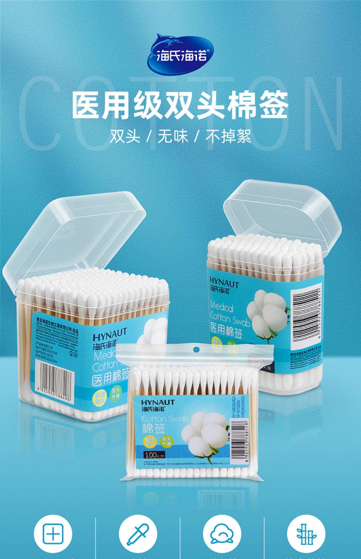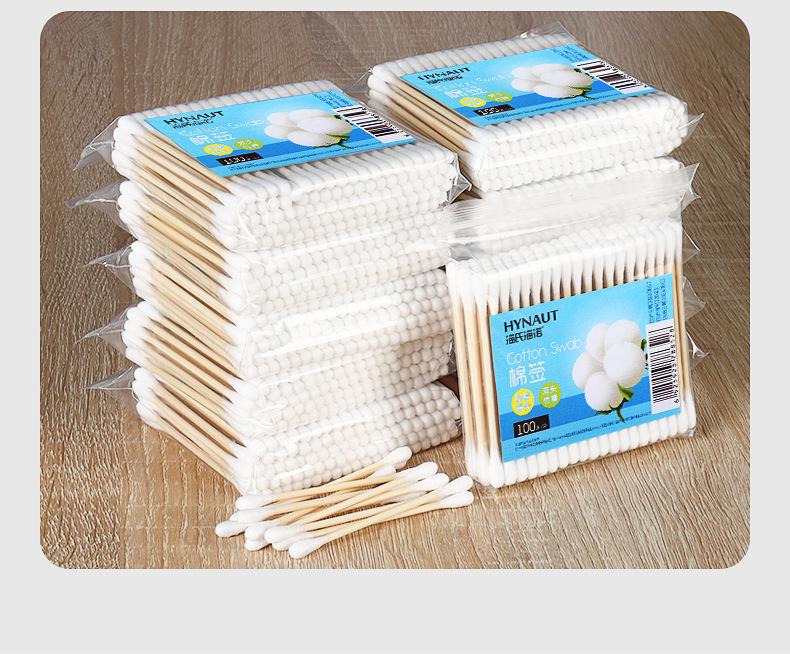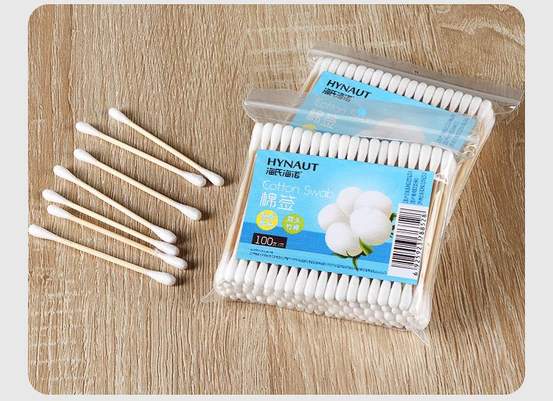 Heshe Hainuo Cotonete de Algodão Cabeça Dupla Descartável Duas Cabeças Cabeça Redonda Casa Cosmética Orelha Puxando Pau de Algodão Médico Pacote Portátil Atacado