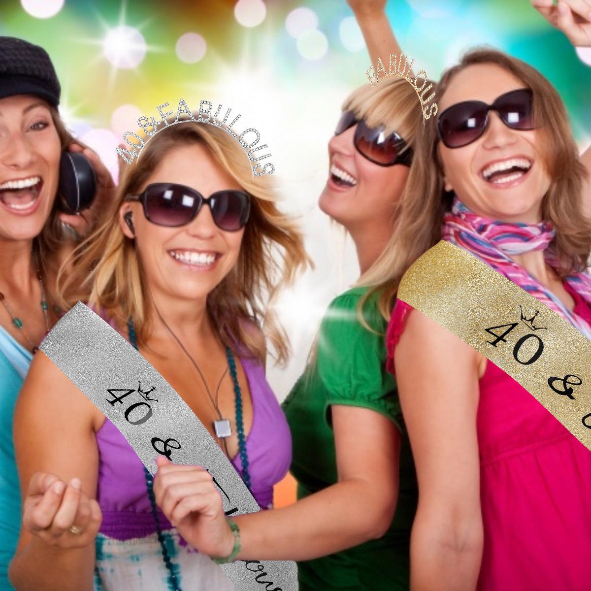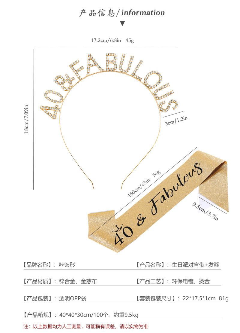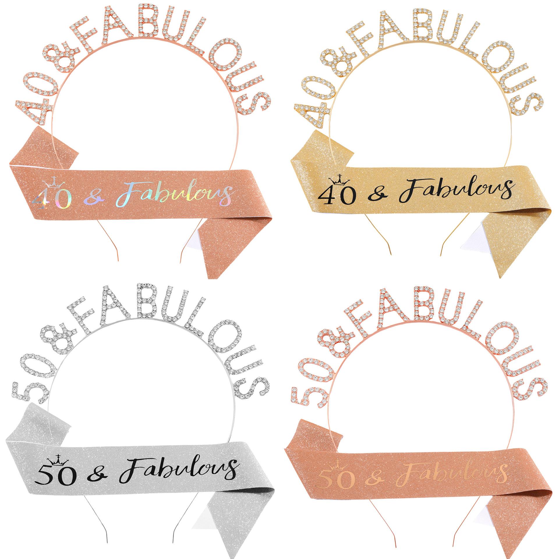 Festa de Aniversário 4050Fabulous Tiara Coroa Conjunto de Fitas Presente para Mulheres Sênior Adorno de Cabeça Joia Decoração