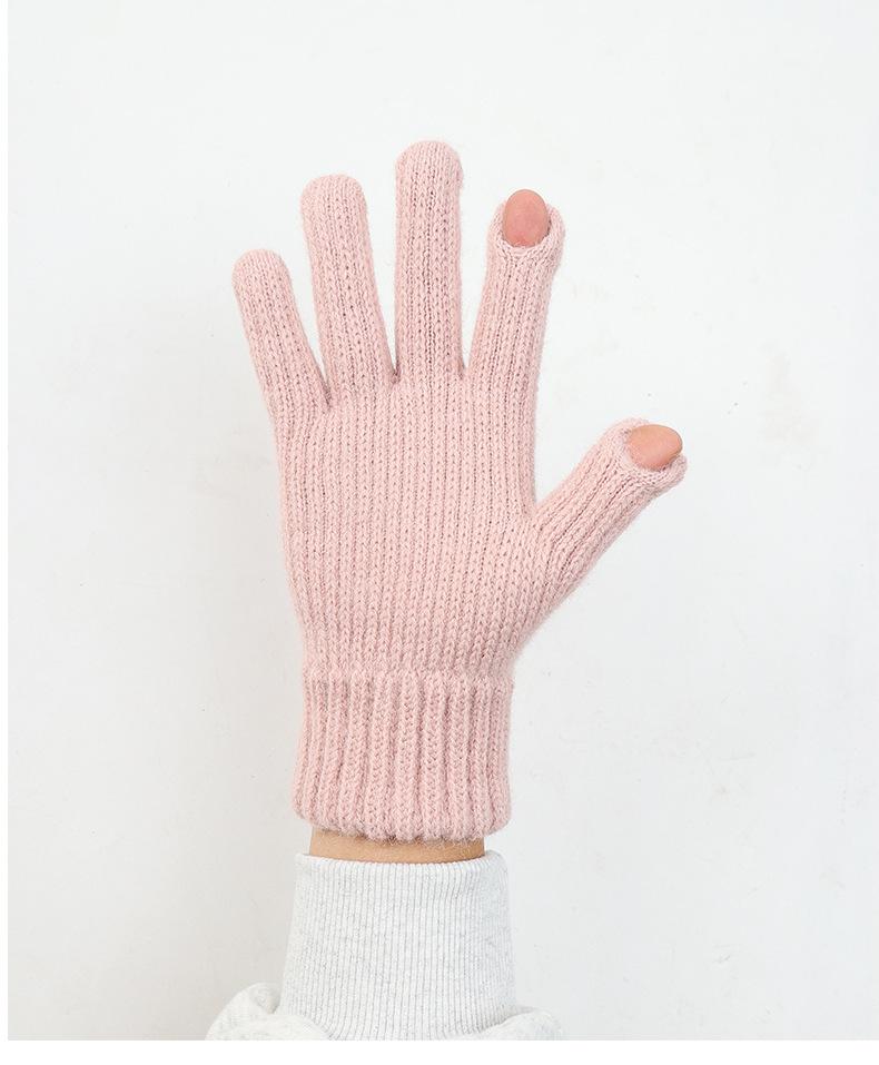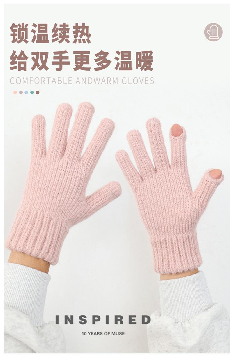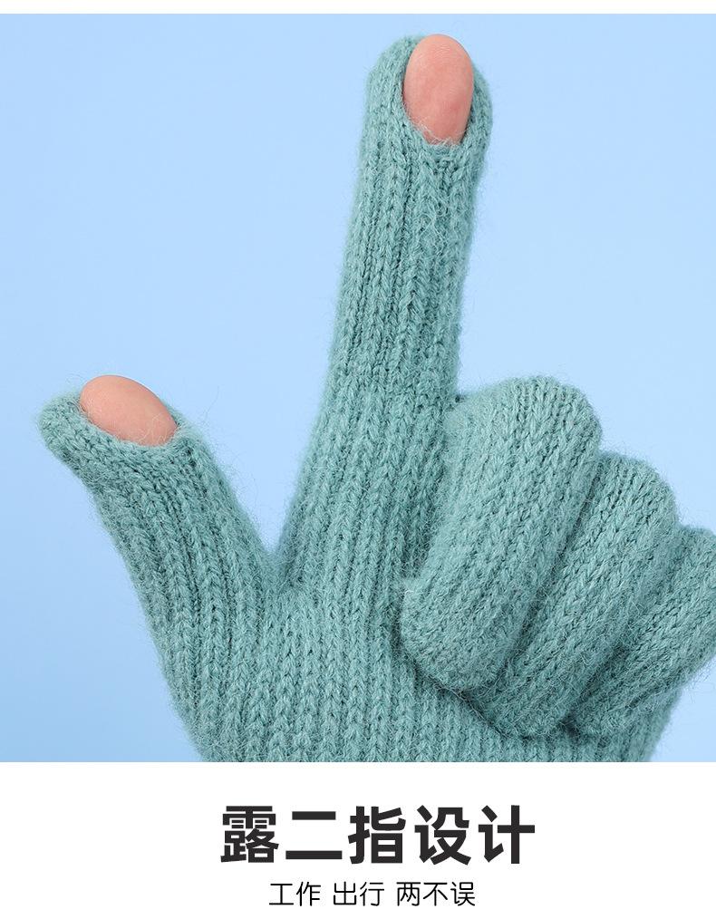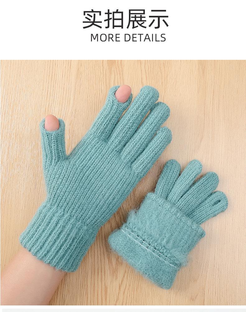 Luvas Femininas Inverno Quente Malha Tela Sensível Ao Toque Engrossado Lã Forrada De Lã Cinco Dedos Orvalho Anti-frio Dois Dedos Luvas De Equitação Personalizadas