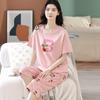 Pijama feminino verão algodão fino manga curta calças cortadas casual desgaste da casa pode sair solto plus size terno
