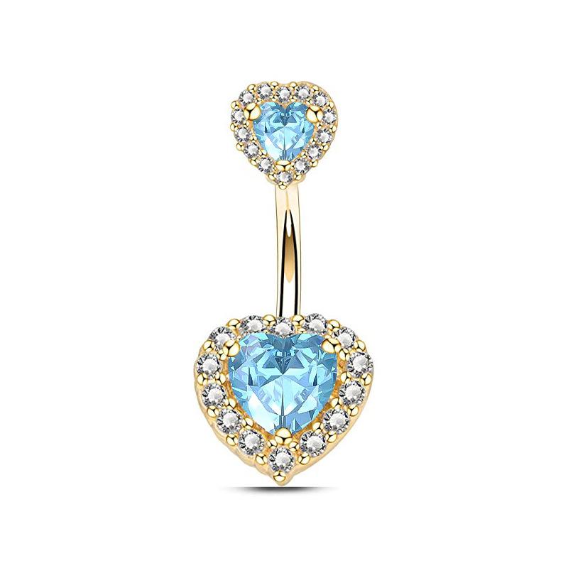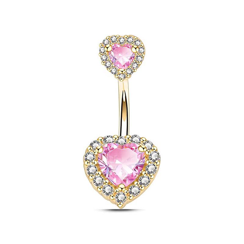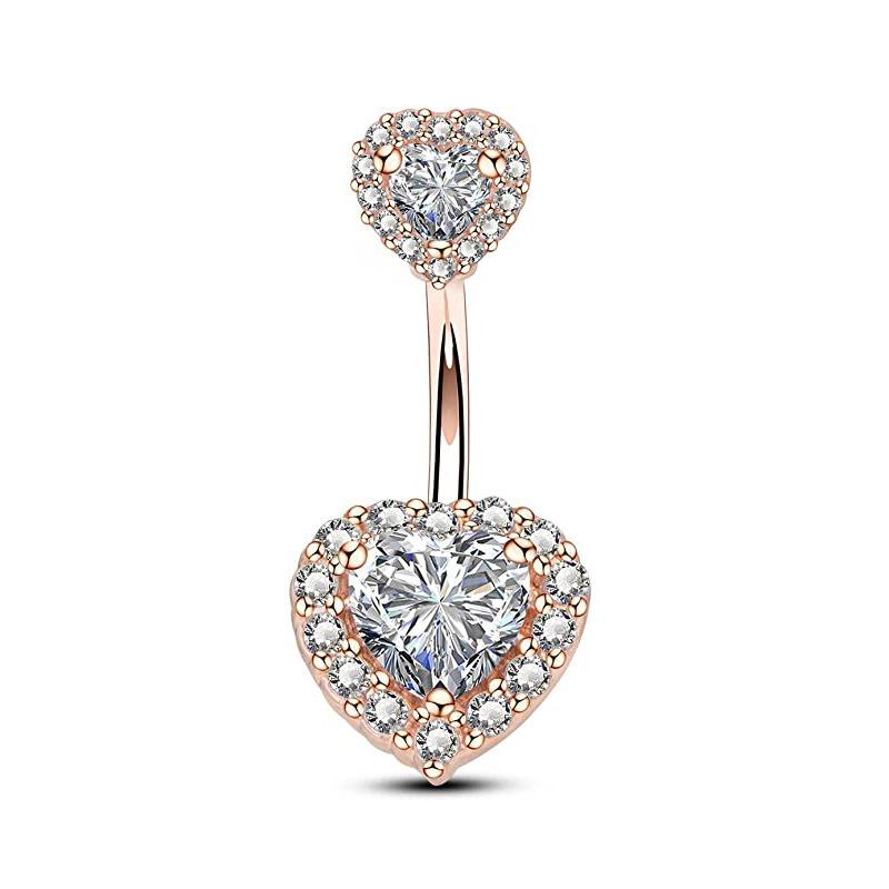 Compre Europeu e americano novo sexy duplo amor umbigo anel criativo zircão fivela umbilical anel umbilical aço inoxidável piercing corpo jóias no atacado no Joom.pro