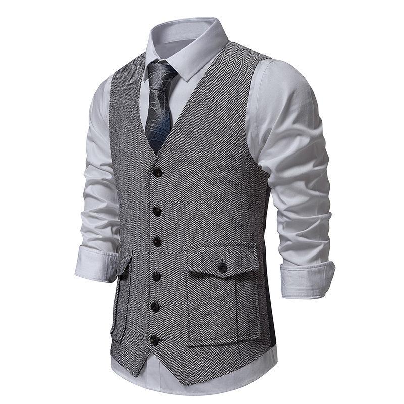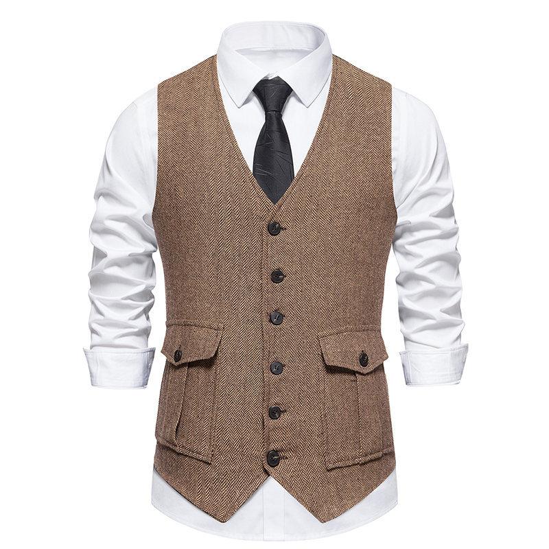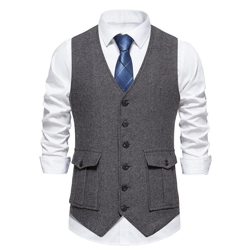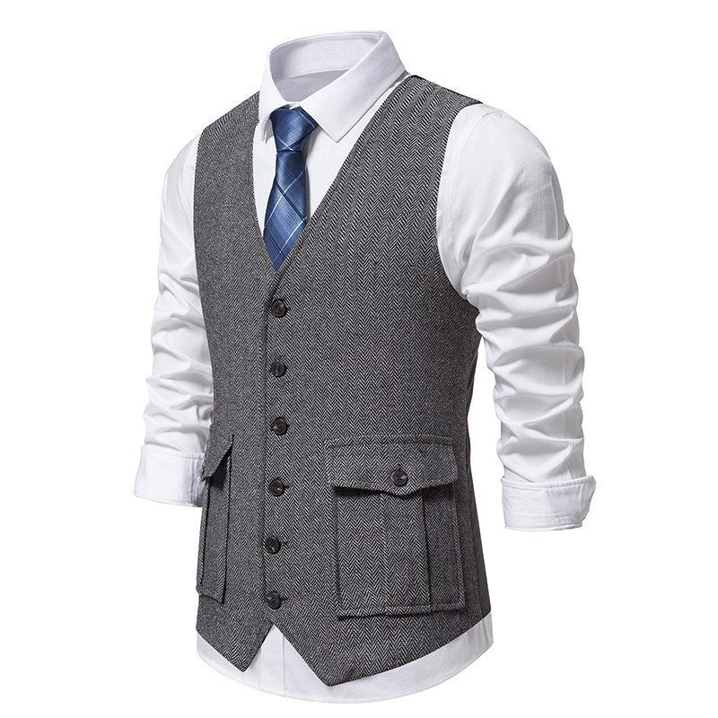 2023 comércio exterior outono Amazon retro colete trespassado terno masculino de bolso transfronteiriço europeu e americano