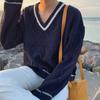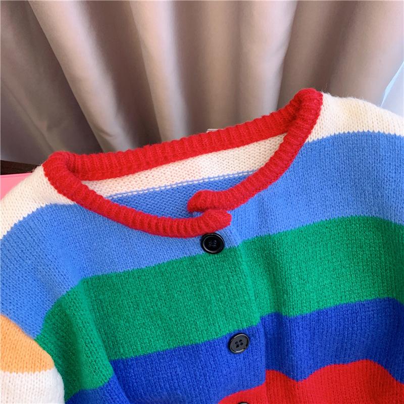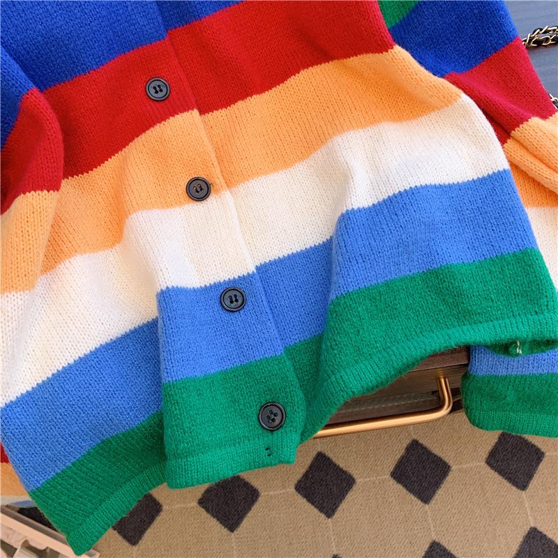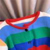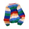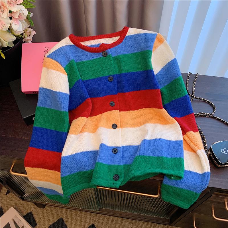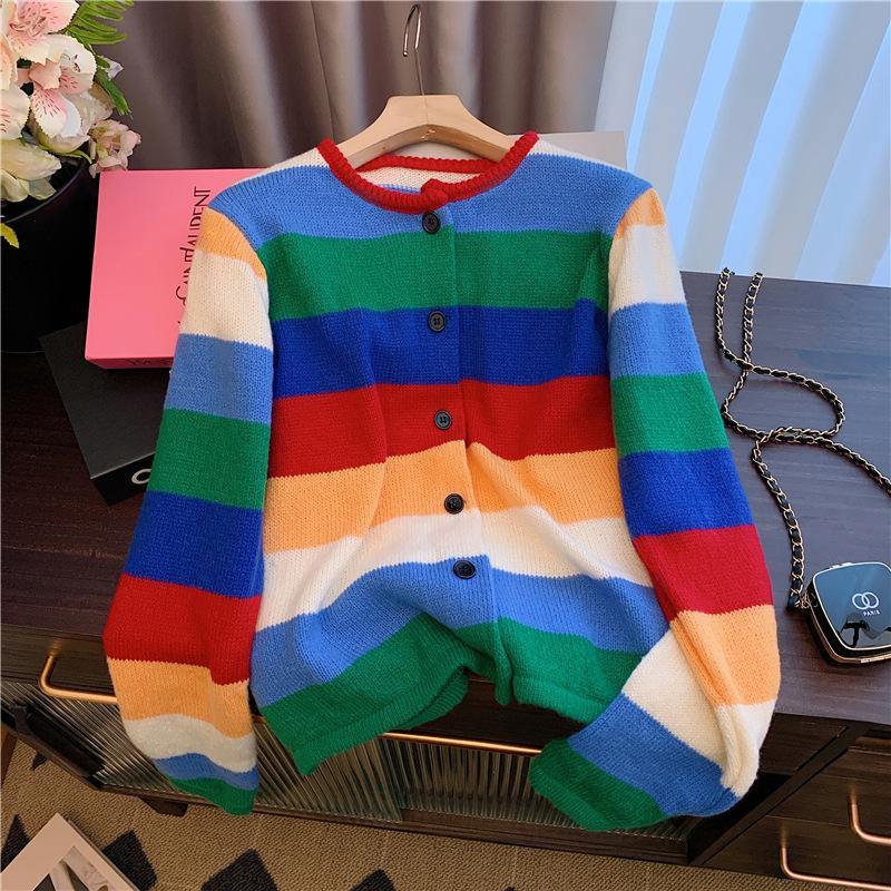 Coreia do Sul Vintage Contraste Cor Arco-íris Listrado Camisola Feminina Outono e Inverno Novo Estilo Hong Kong Chic Em Torno Do Pescoço Moda Cardigan De Malha