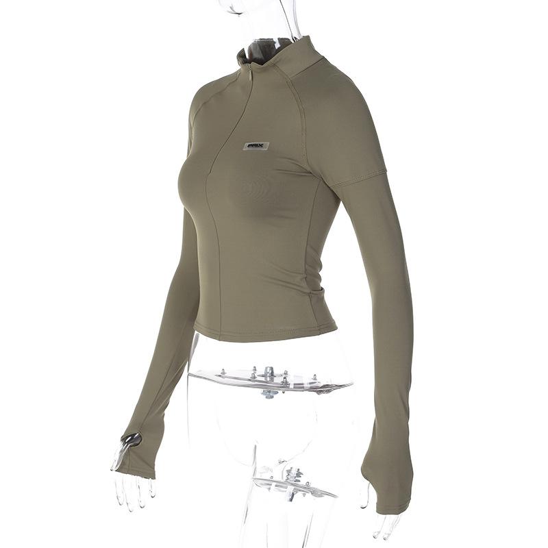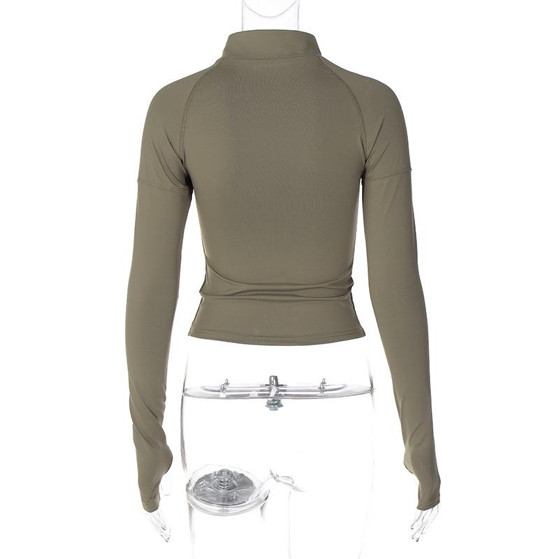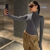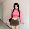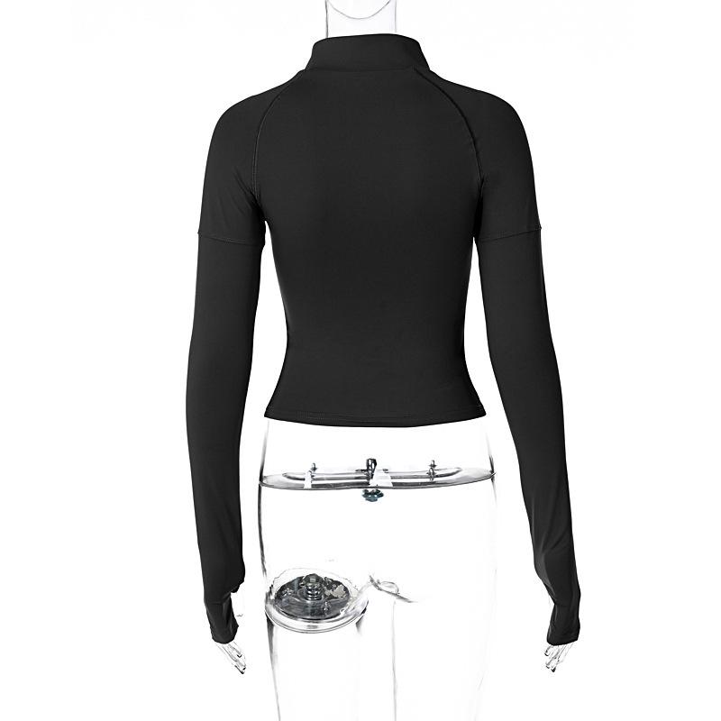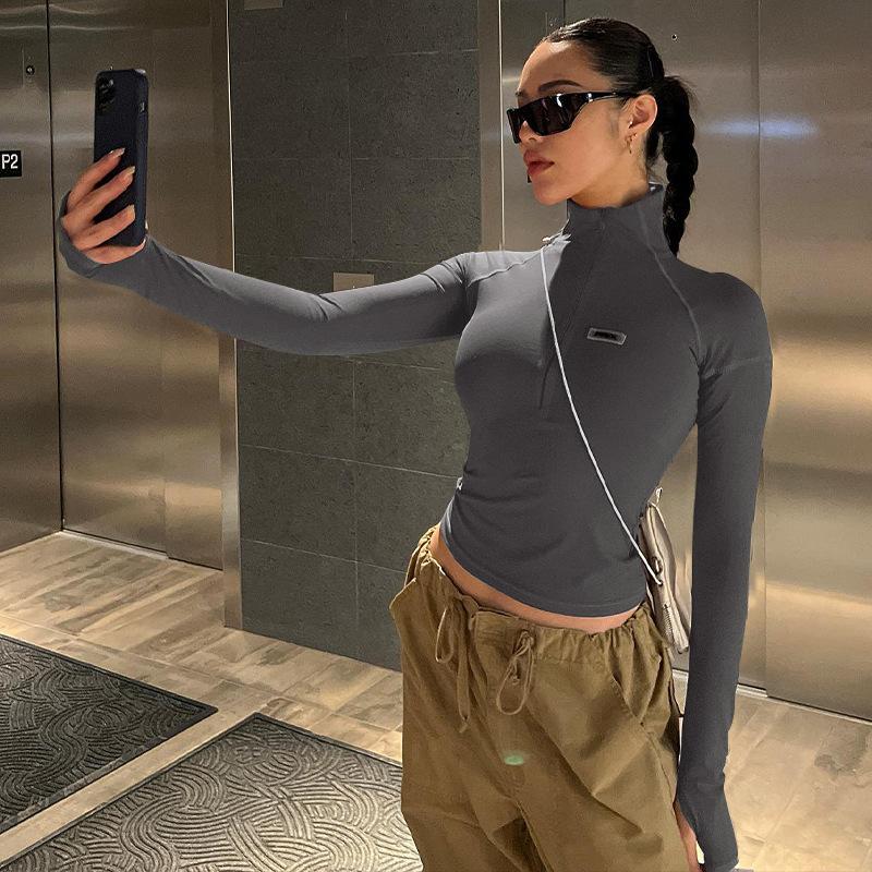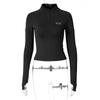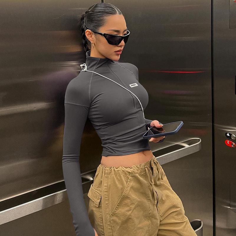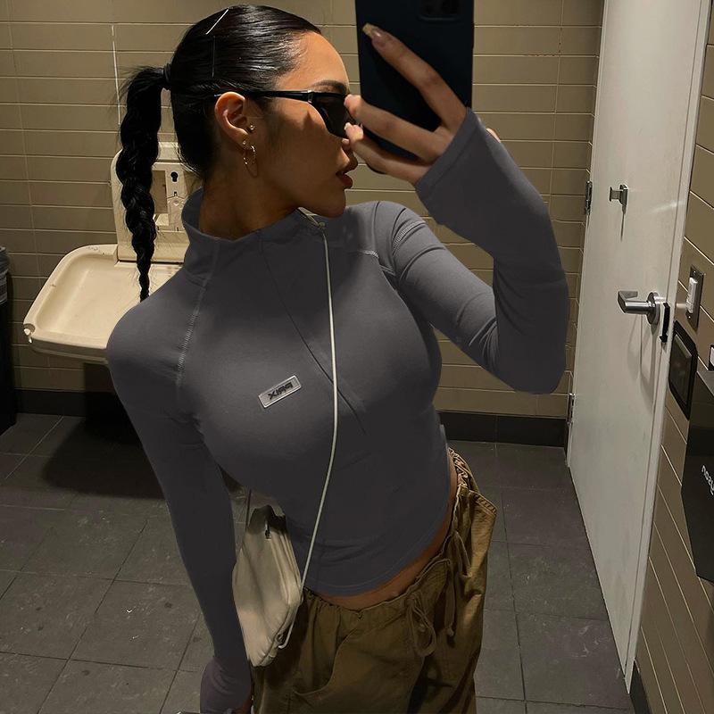 Estilo europeu e americano de roupas femininas puro estilo menina quente meia gola alta apertado emagrecimento zíper curto manga longa assentamento camisa top
