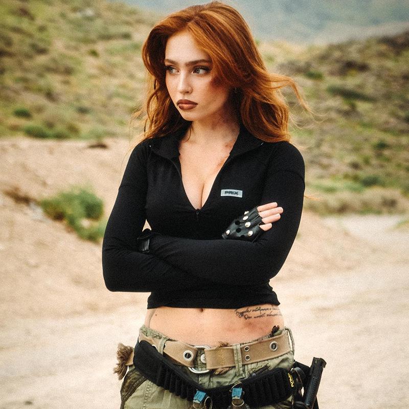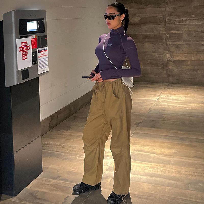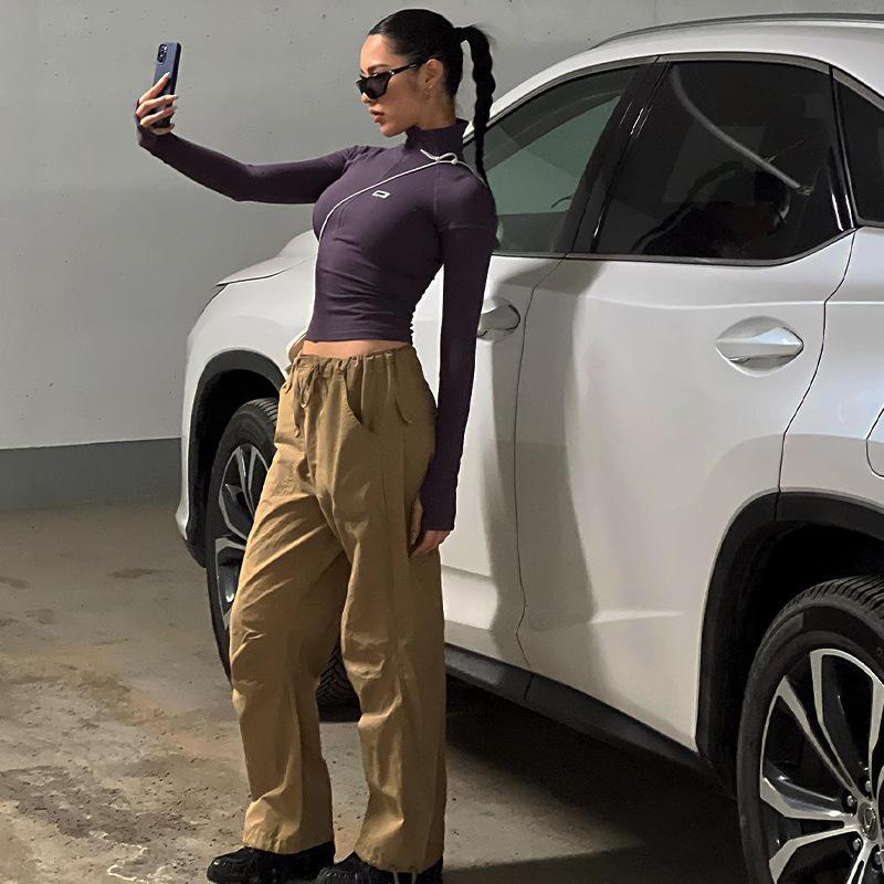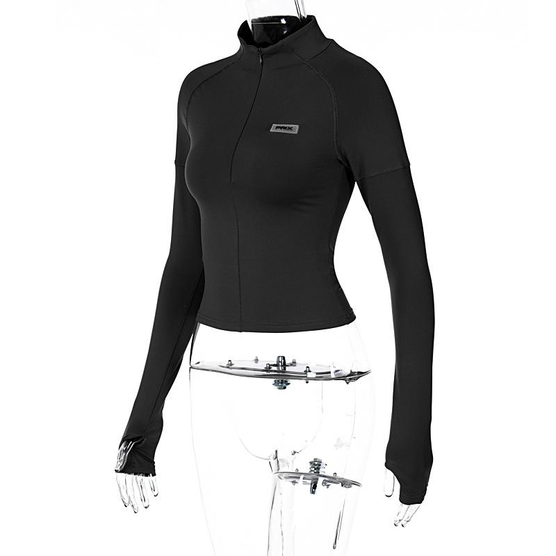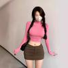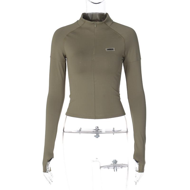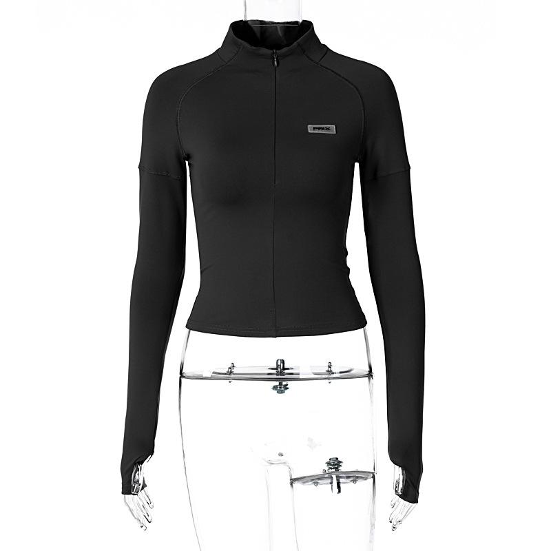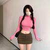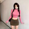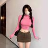 Estilo europeu e americano de roupas femininas puro estilo menina quente meia gola alta apertado emagrecimento zíper curto manga longa assentamento camisa top