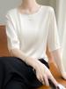 Verão 2025 Nova Camiseta de Seda Respirável de Gola Redonda e Manga Curta, Solta e Versátil Cor Sólida Manga Curta Cetim de Acetato