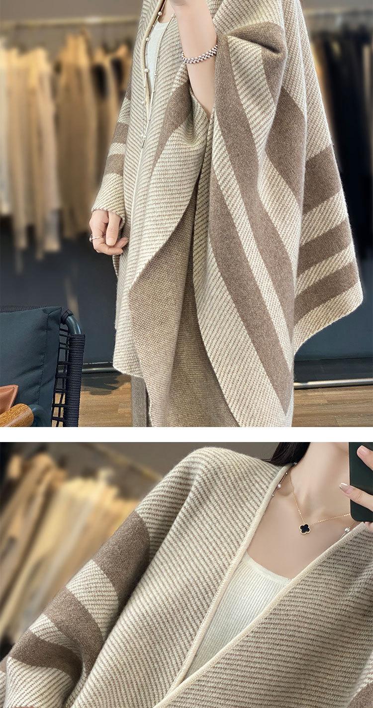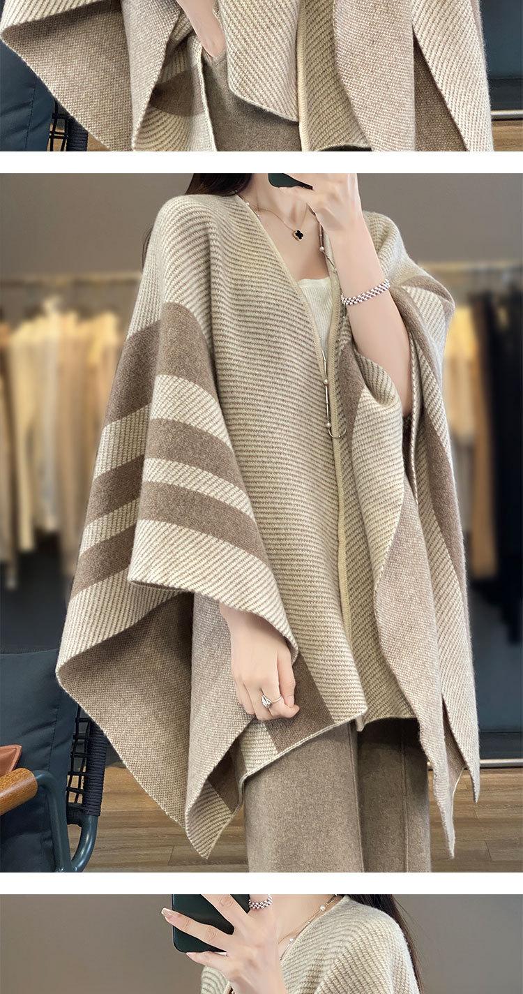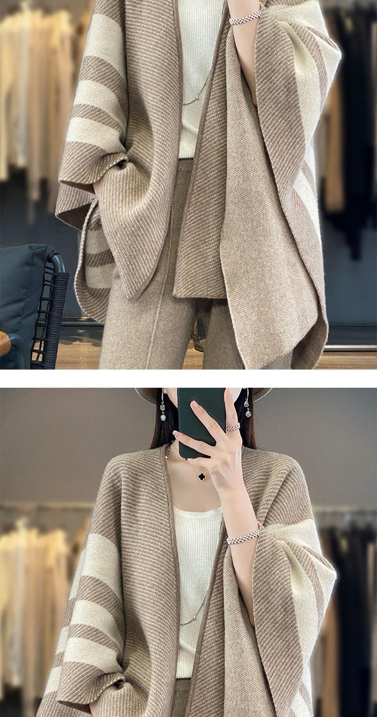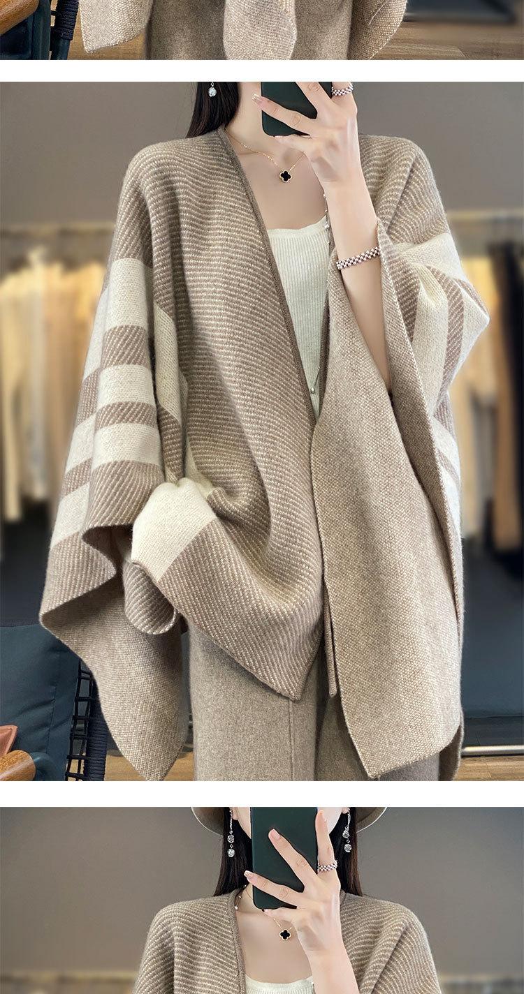 Manto de lã retrô 2024 Nova cor contrastante estilo ocidental malhas xale cardigan casaco top