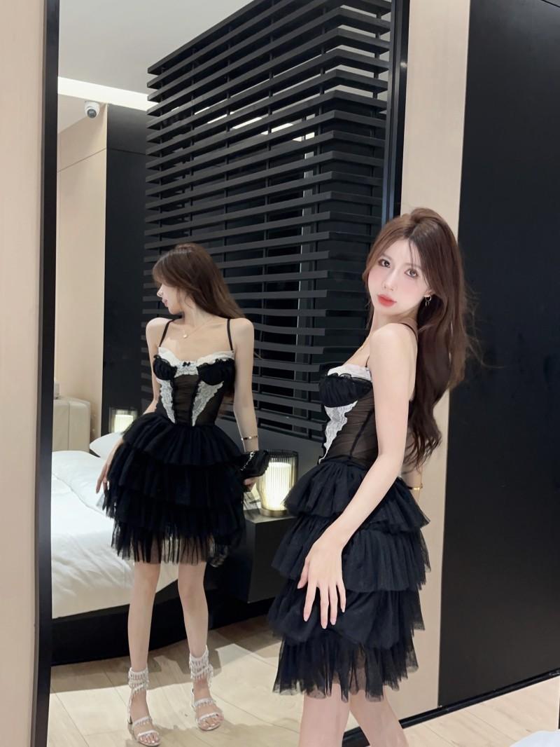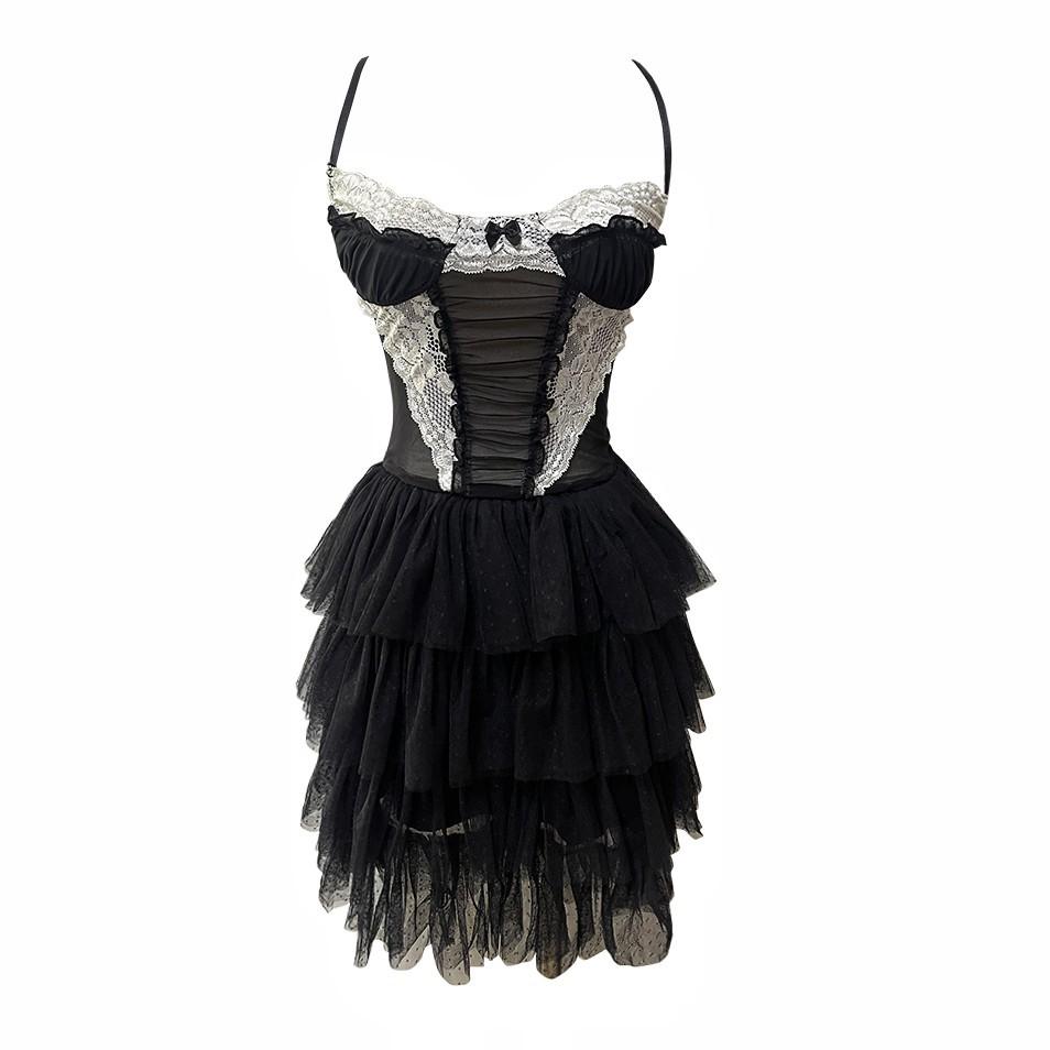 Estilo francês princesa renda malha multi-camada babados menina estilingue puro desejo bonito doce e picante estilo bolo vestido
