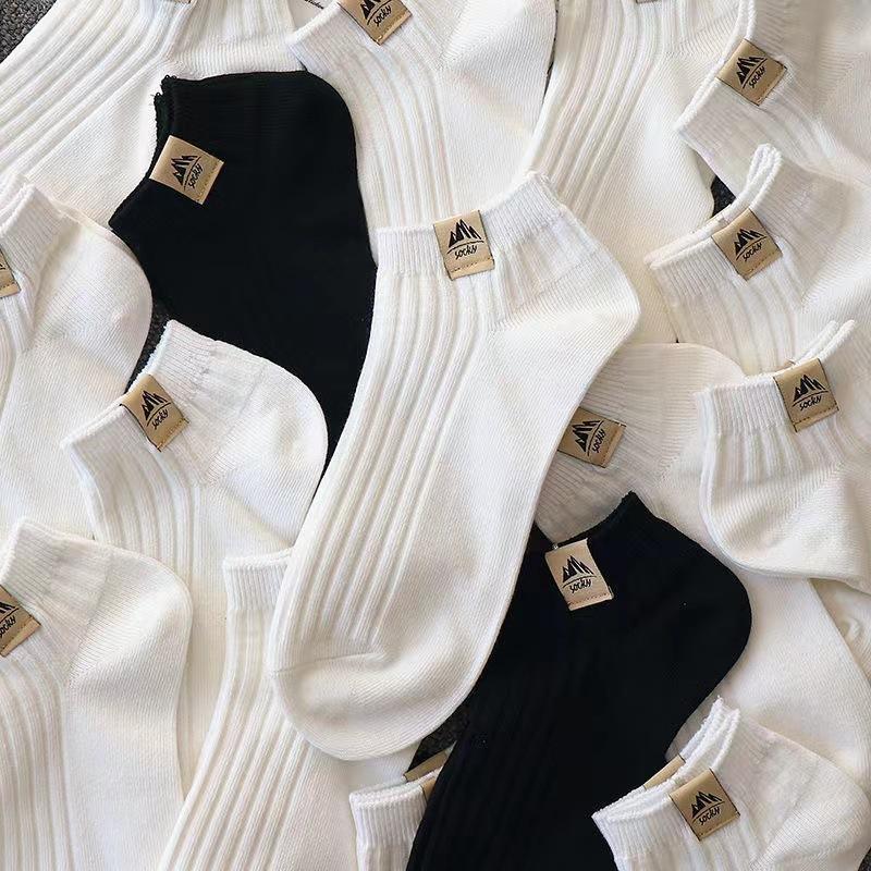 Meias masculinas etiqueta de pano simples meias de cor sólida na moda primavera e verão versátil novo TikTok popular masculino barco meias fábrica atacado