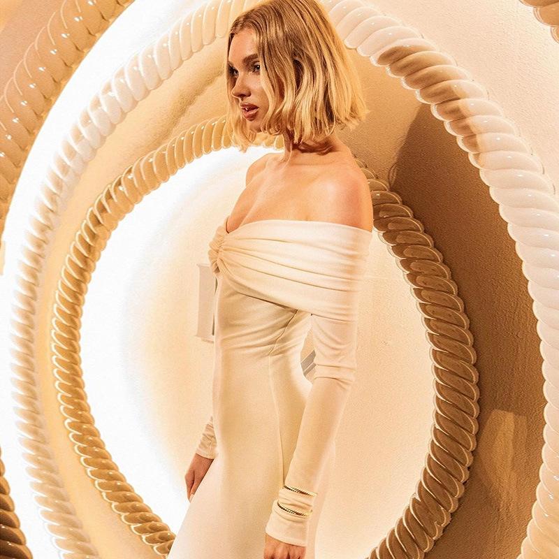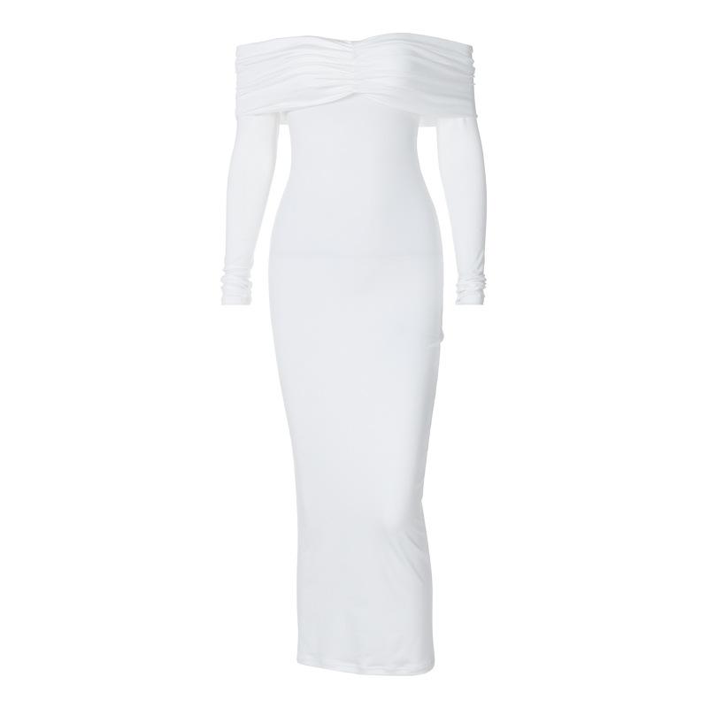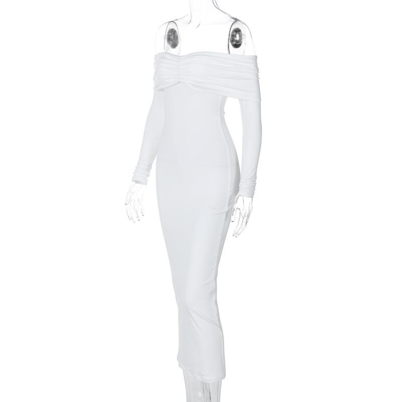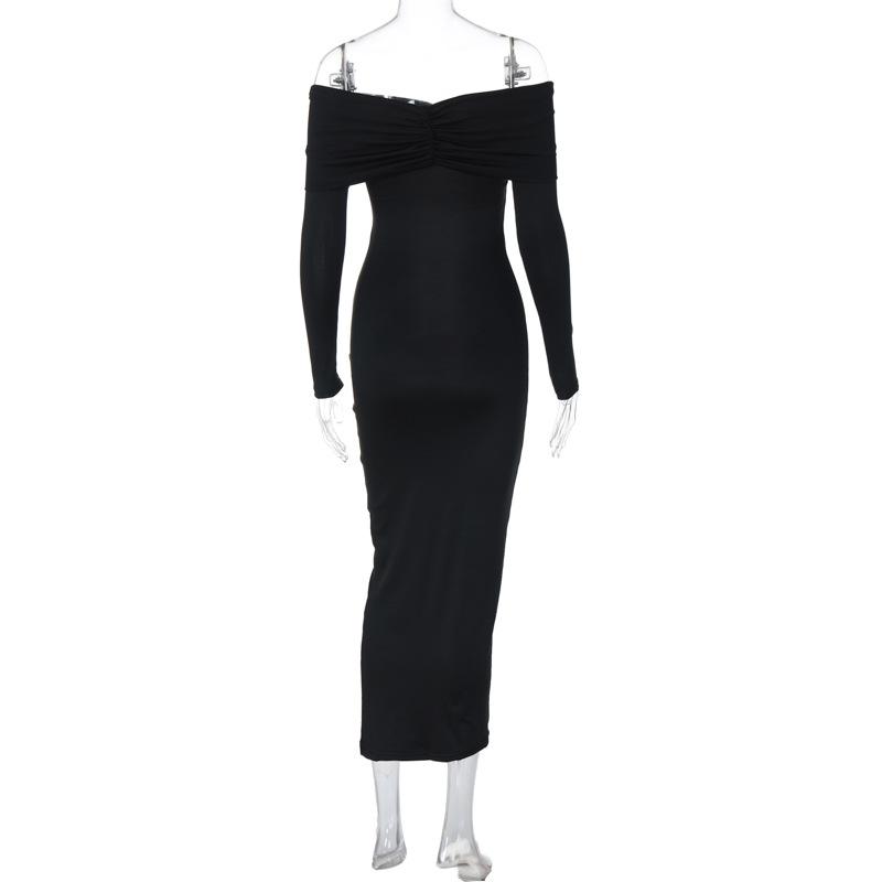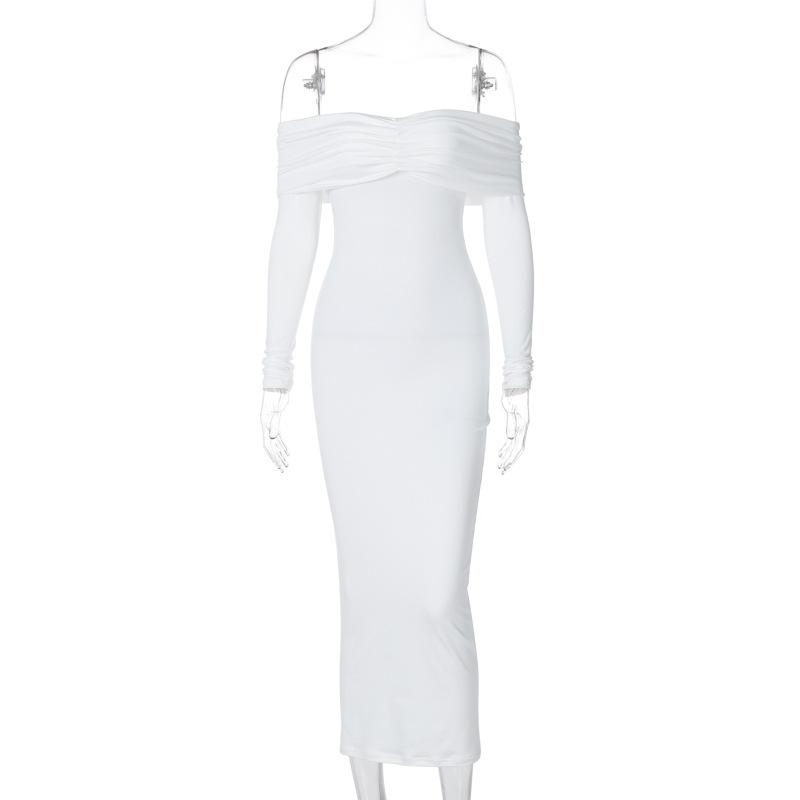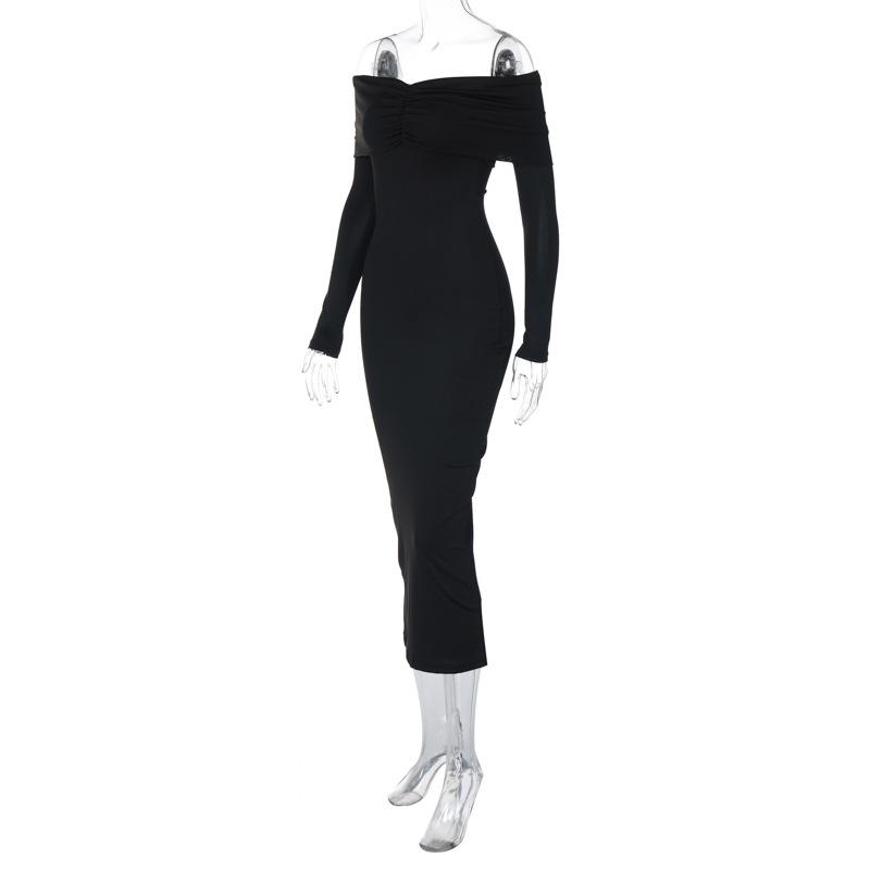 Sexy Comércio Exterior roupas femininas novo vestido de noite de banquete off-neck 2023 outono e inverno estilo europeu e americano Sexy Slim fit vestido