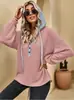 Tops Femininos Europeus e Americanos de Outono e Inverno Largos com Capuz Amazon Novo Moletom Casual de Waffle com Botões de Manga Longa para Mulheres