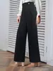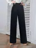 2024 Nova Cor Sólida Elegante Botão Malha Stretch Calças de Perna Larga Moda All-match Calças Femininas Calças de Perna Reta Roupas Femininas