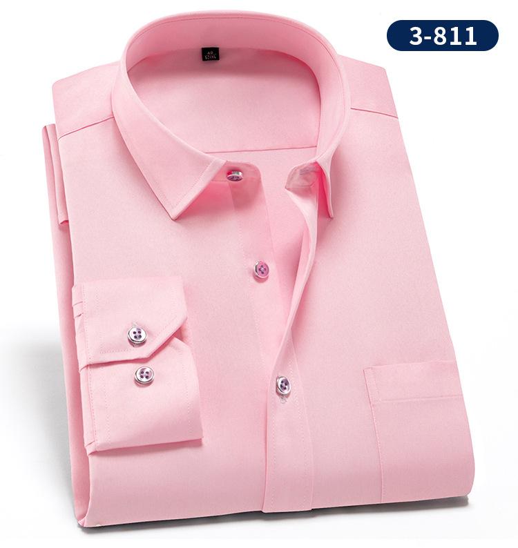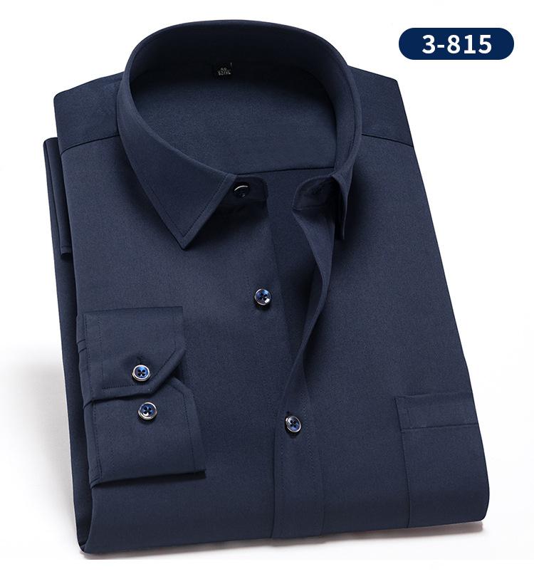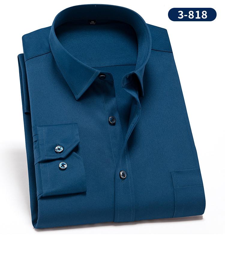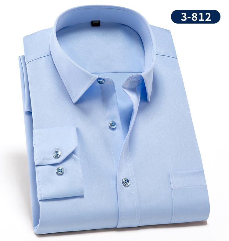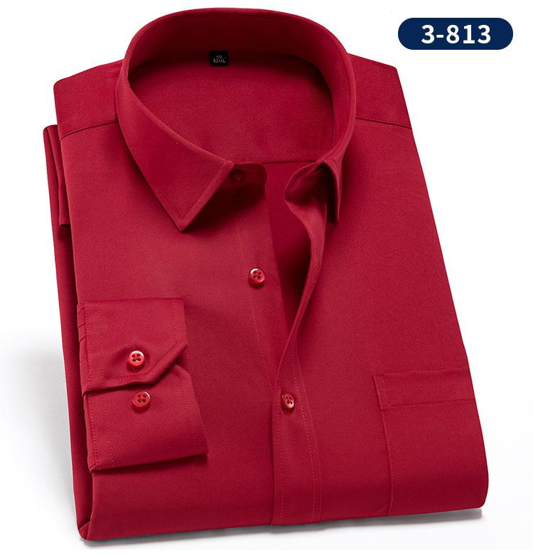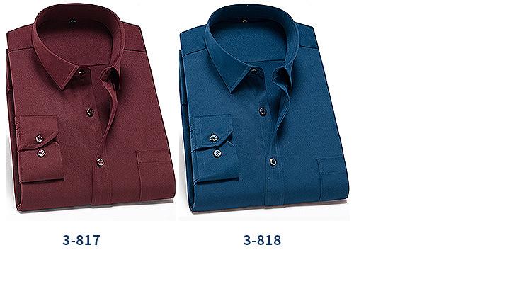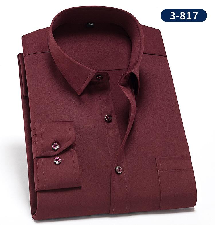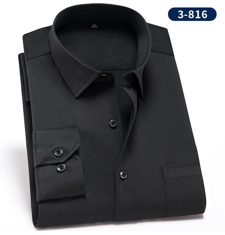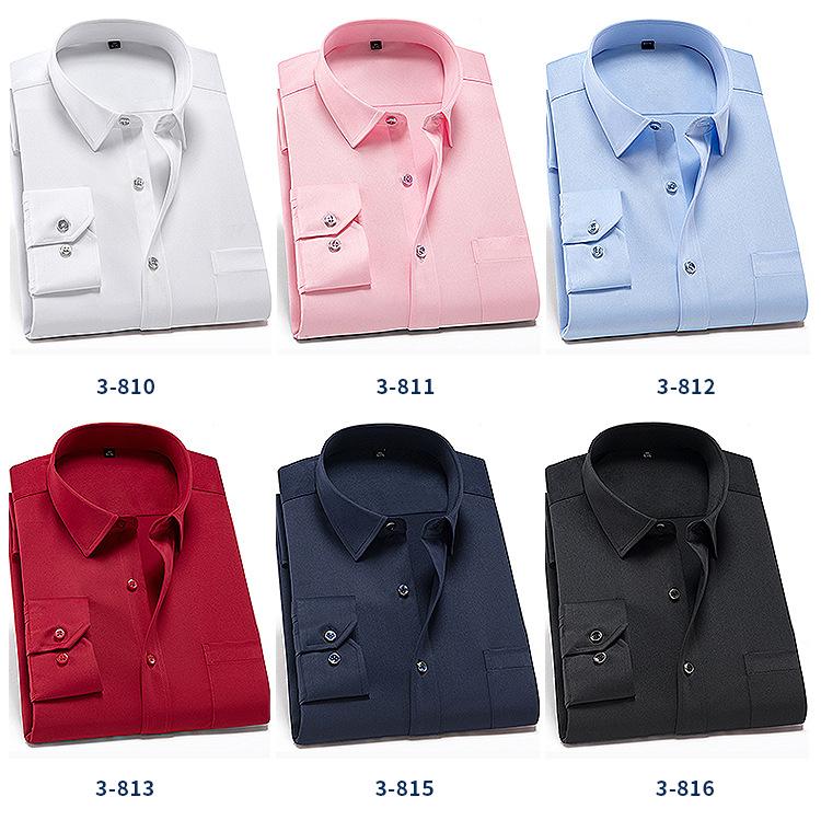 Camisa de cor sólida masculina elástica respirável para negócios casual estilo coreano camisa slim fit camisa branca para negócios manga comprida masculina