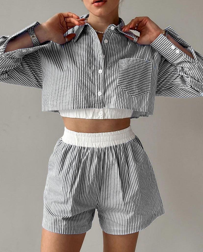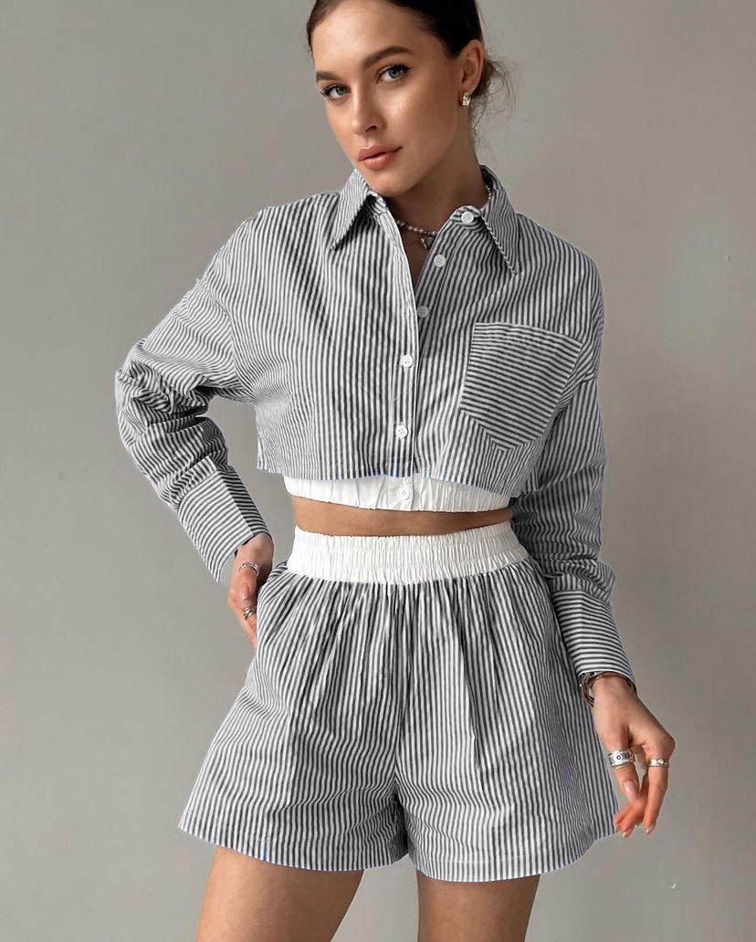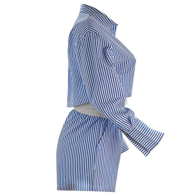 Terno listrado feminino, calça de duas peças da moda