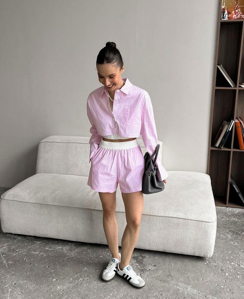 Terno de verão europeu e americano de duas peças de alta qualidade