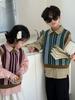 Colete Infantil 2026 Estilo Outono Meninos e Meninas Estilo Coreano Colete Tricotado Listrado Vertical Top de Lã Listrado Colorido Gola Redonda Infantil