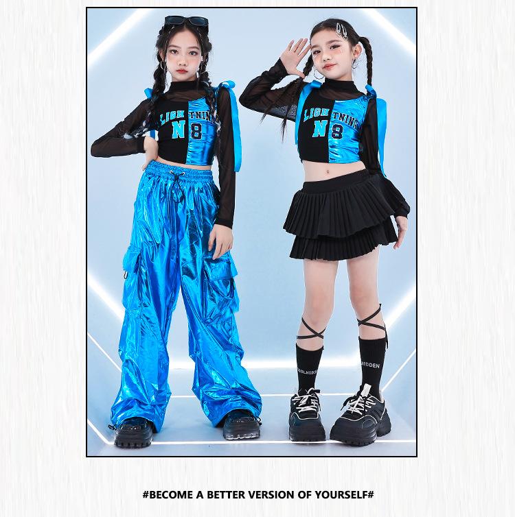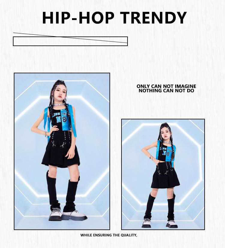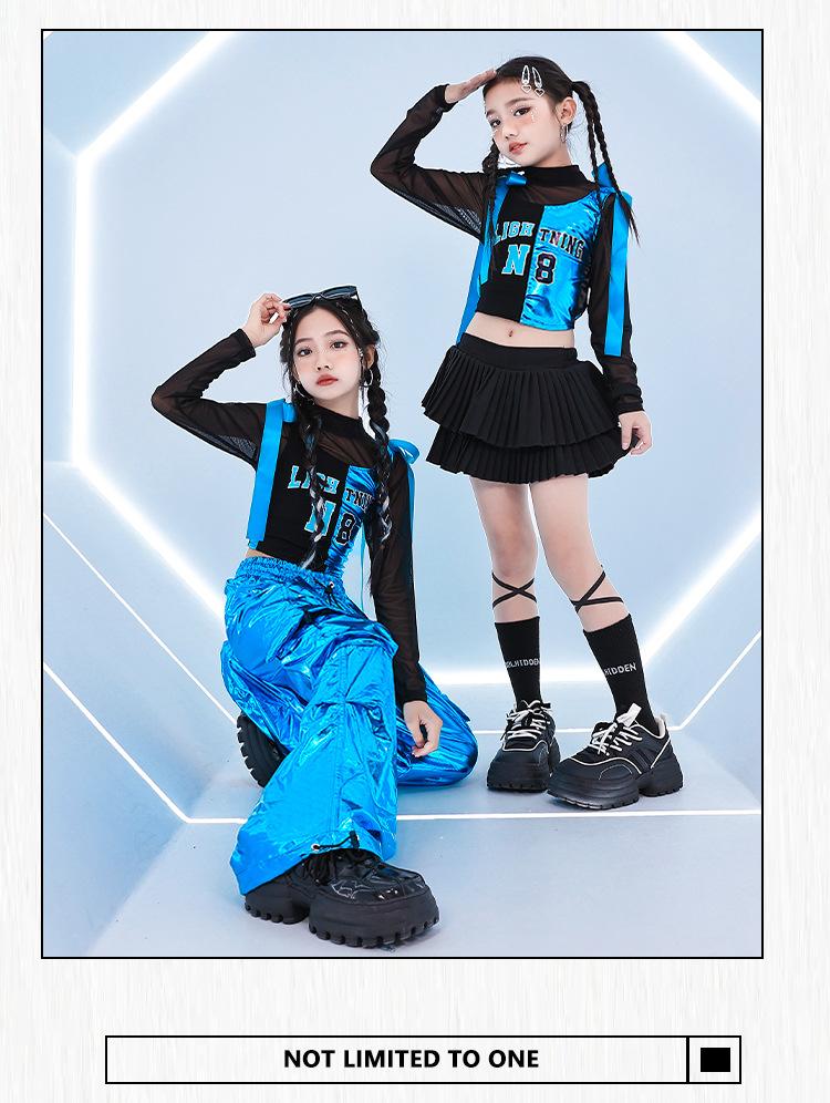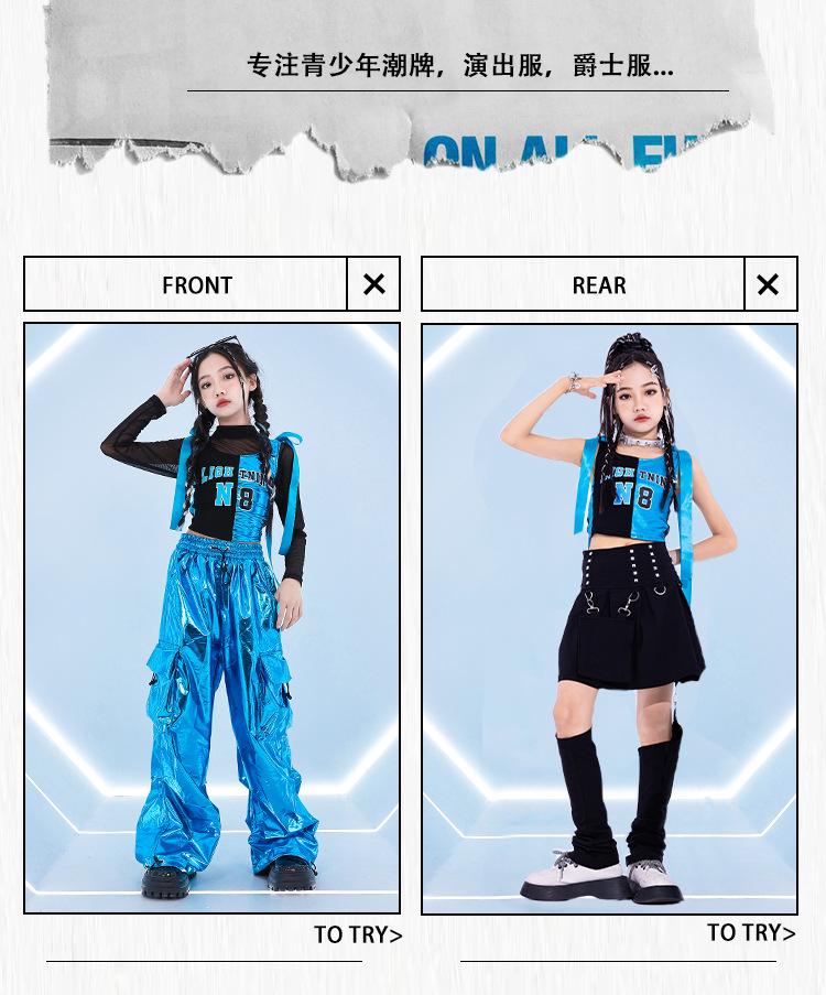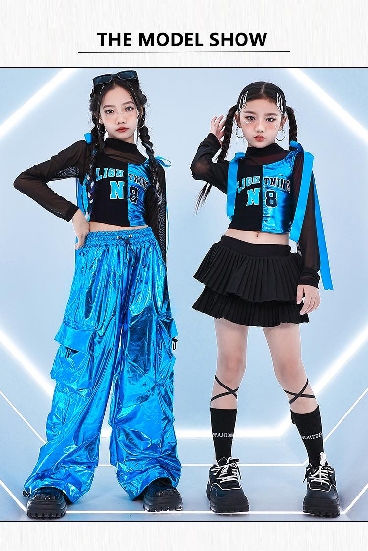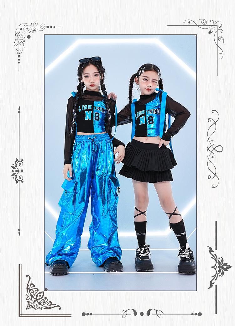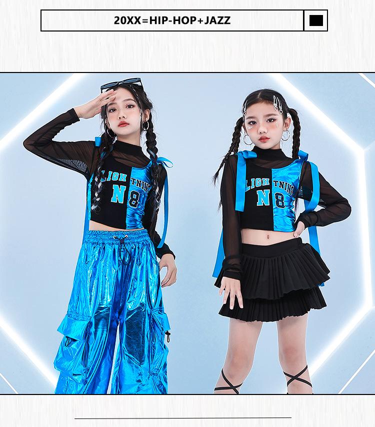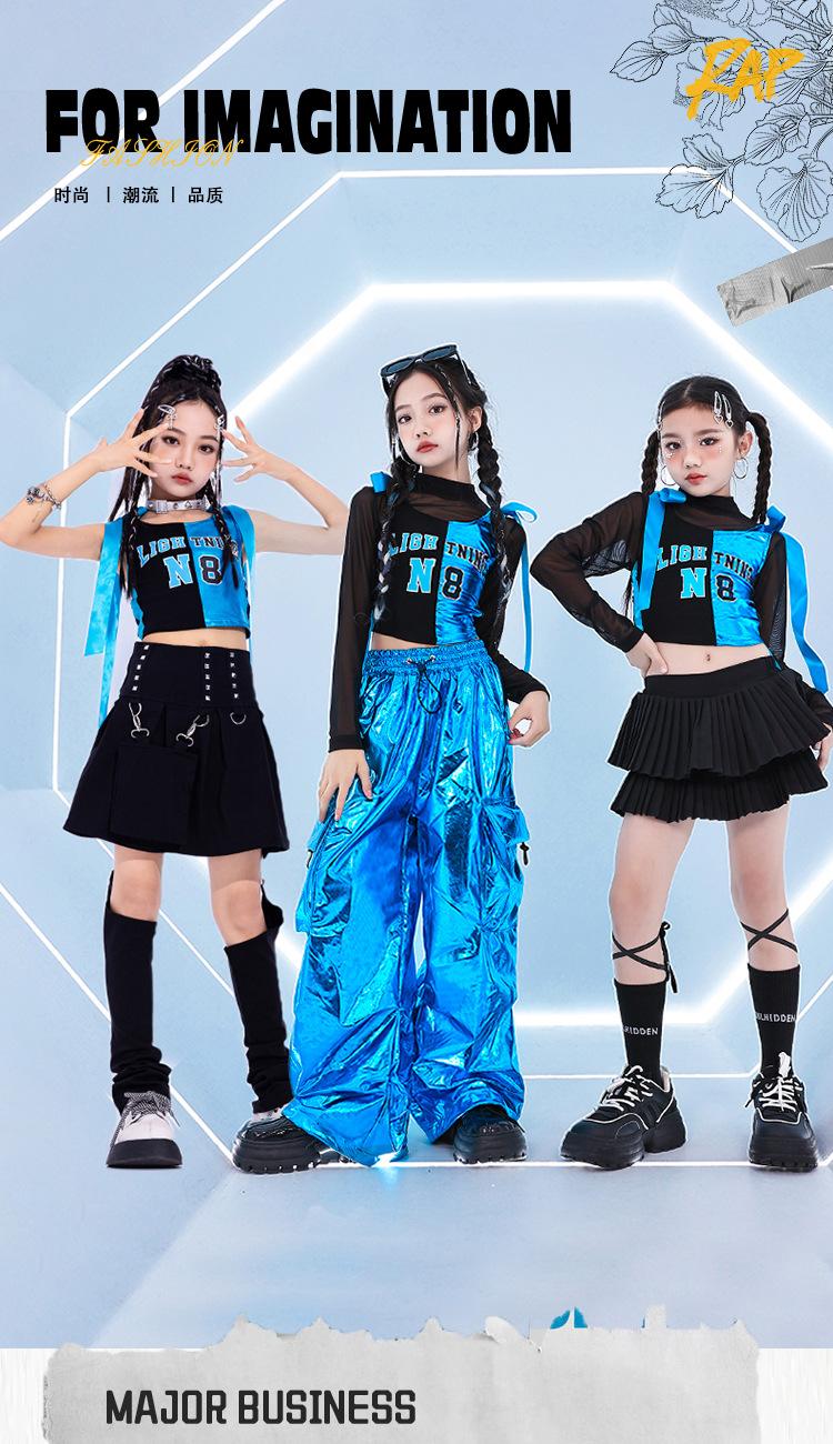 Traje de dança jazz para meninas Traje de dança de rua infantil Hip Hop Vestido de moda de rua frito para crianças Modelo de grupo feminino Terno de show