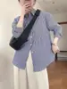 Plus Seleciona Cuidadosamente Camisas de Algodão Liso Femininas com Listras, Sensação de Alto Nível, Ombros Regulares, Emagrecimento, Adequadas para o Deslocamento, Blusas da Moda para Mulheres
