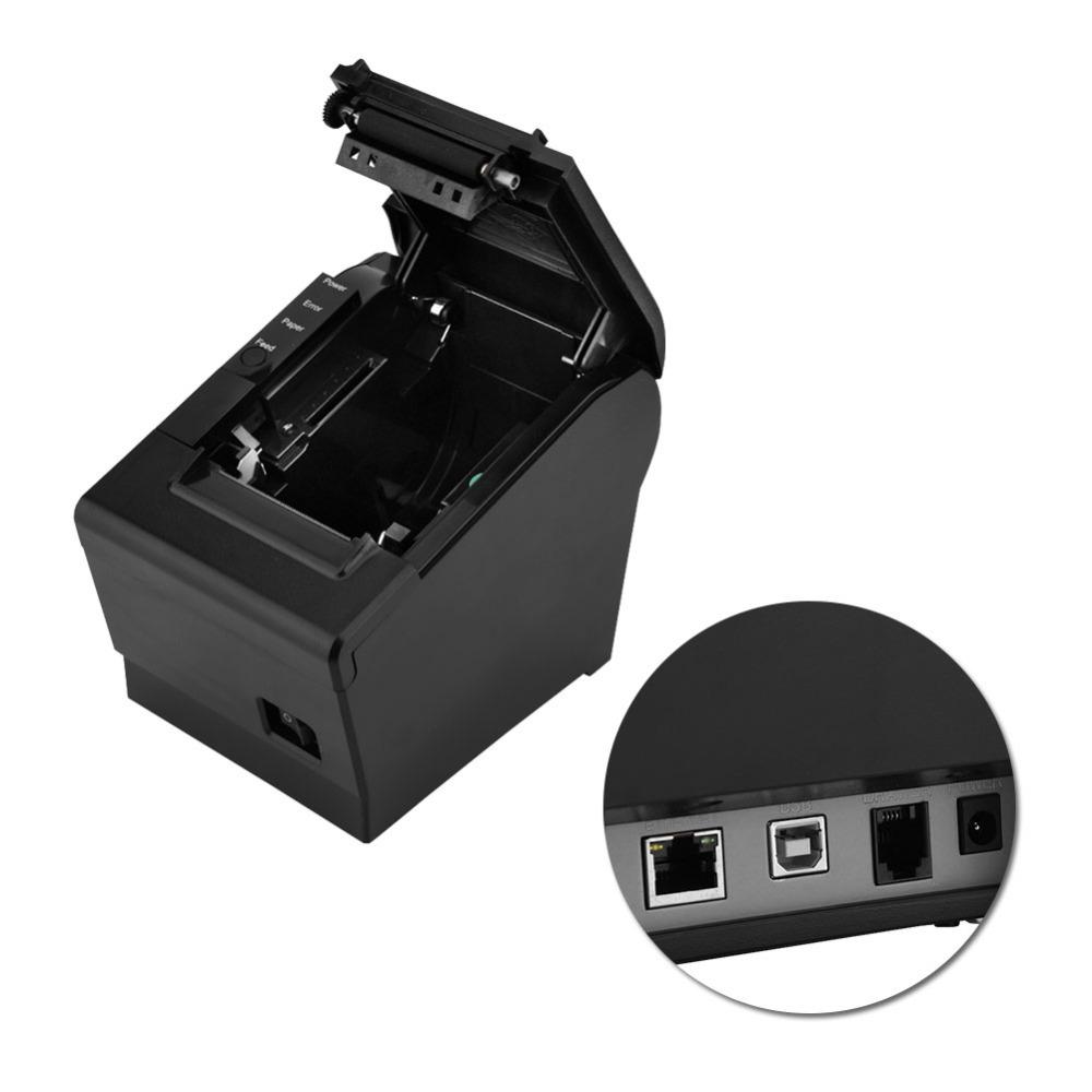 Impressora térmica de recibos de caixa de supermercado de mesa Jingpu, porta de rede USB, Bluetooth, WiFi, máquina de código de barras para roupas de cozinha